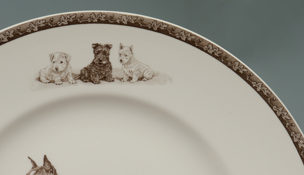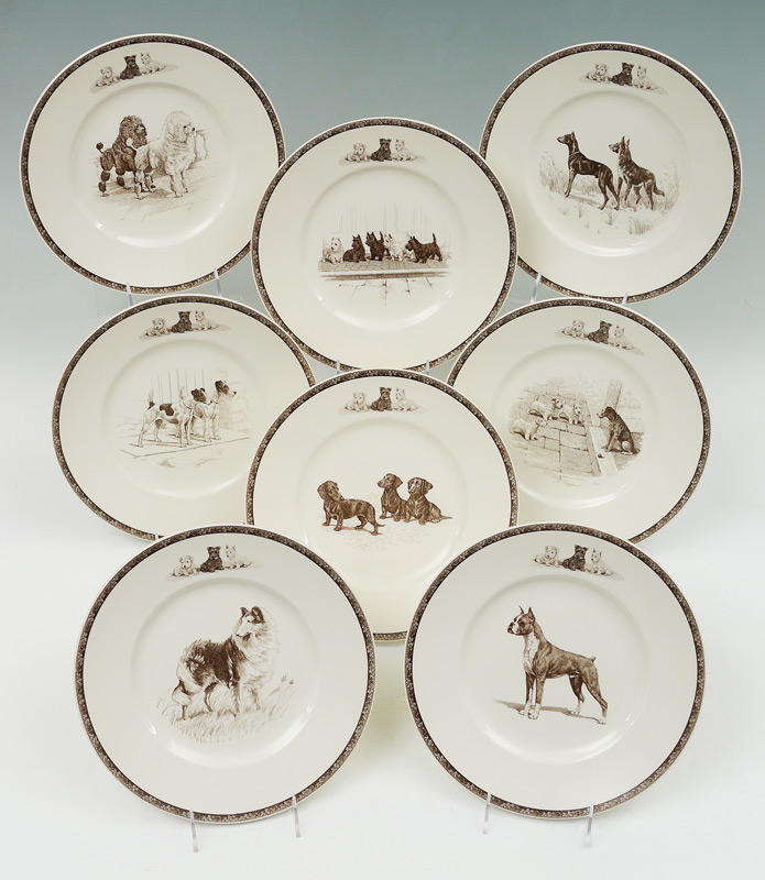WEDGWOOD NON-SPORTING, TERRIER AND WORKING DOG PLATES: Set of 8, each centering a reproduction of an original drawing. 10 3/4'' dia.. Estate of Elton Hoyt II