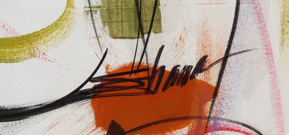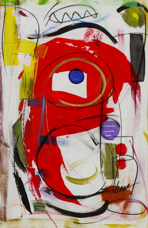 DOMINGUEZ, Shana, (American, 20th Century): ''Chaos'', Acrylic/Paper, Sight size 23 1/4'' x 15 1/2'', signed lower right, encased in custom frame with minor wear 40'' x 32''.