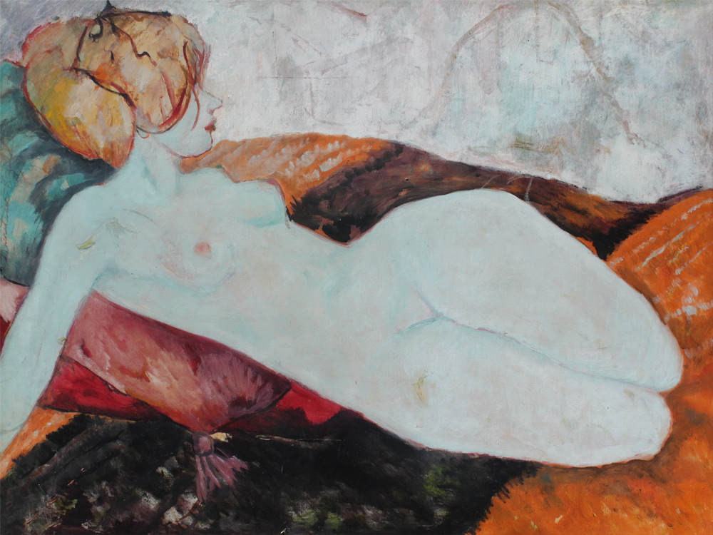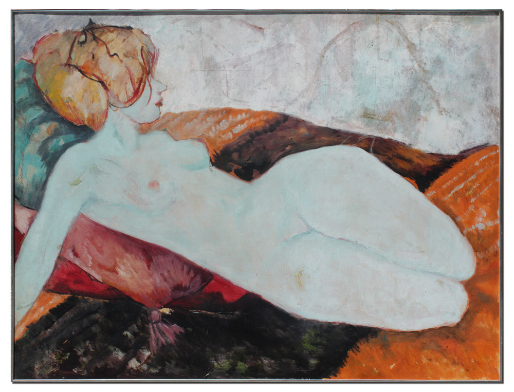 KUZULKA, Kierstead, (American, 1905-1985): ''Nude'', Oil/Masonite, 36'' x 48'', label affixed verso, titled on the stretcher, thin edge metal frame.