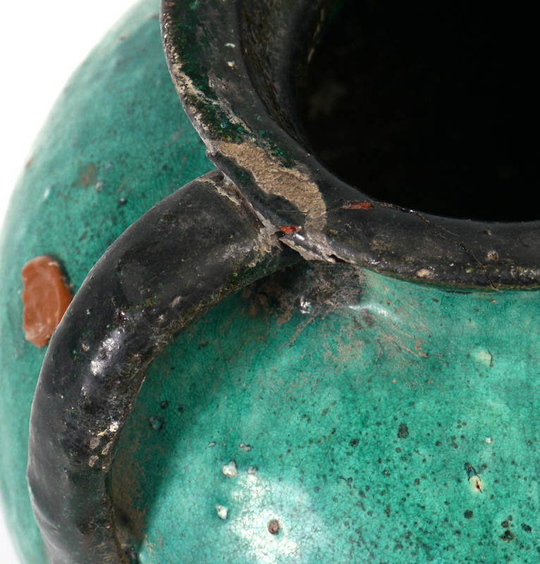 CONDITION: Repair to lip near handle.