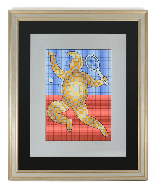 VASARALEY, Victor, (Hungarian-French, 1906-1997): Tennis Player, Serigraph, 18'' x 14 1/2'', pencil signed lower right, #'d 146/200 lower left, framed 25'' x 21''.