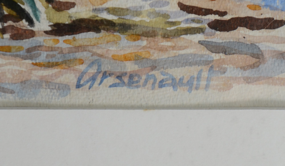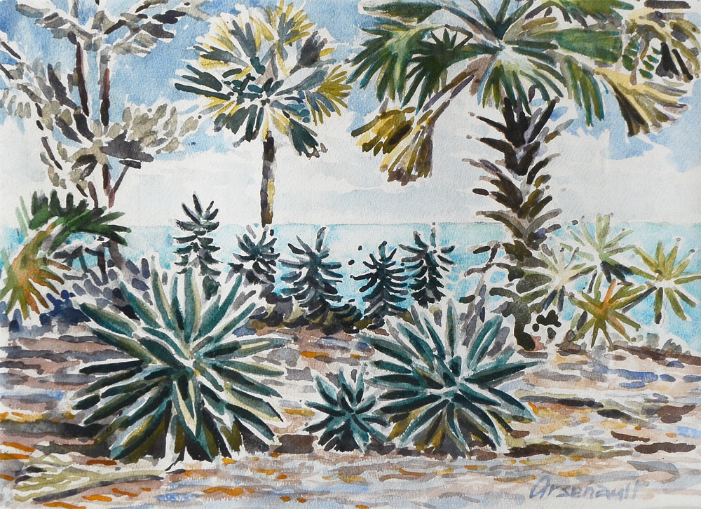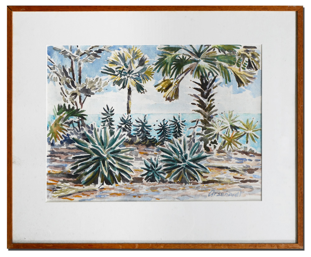 ARSENAULT, Paul, (American, 20th C): Tropical Landscape with Palms, Watercolor, Sight size 14 1/4'' x 19 1/2'', signed lower right, framed 23'' x 26 3/4''.