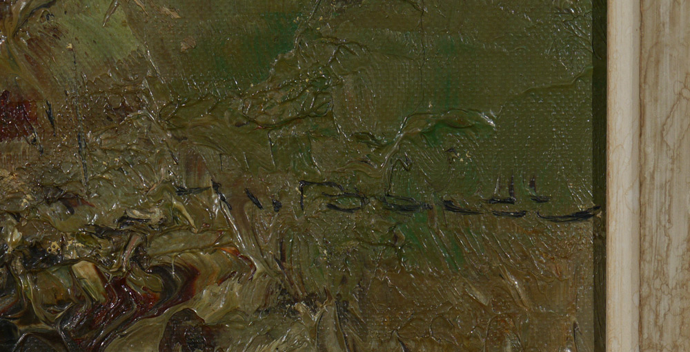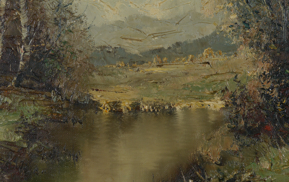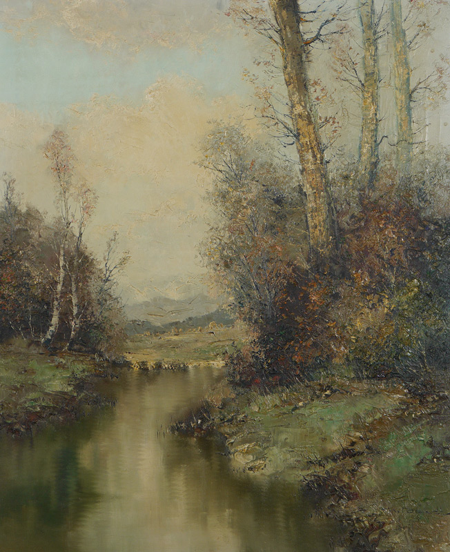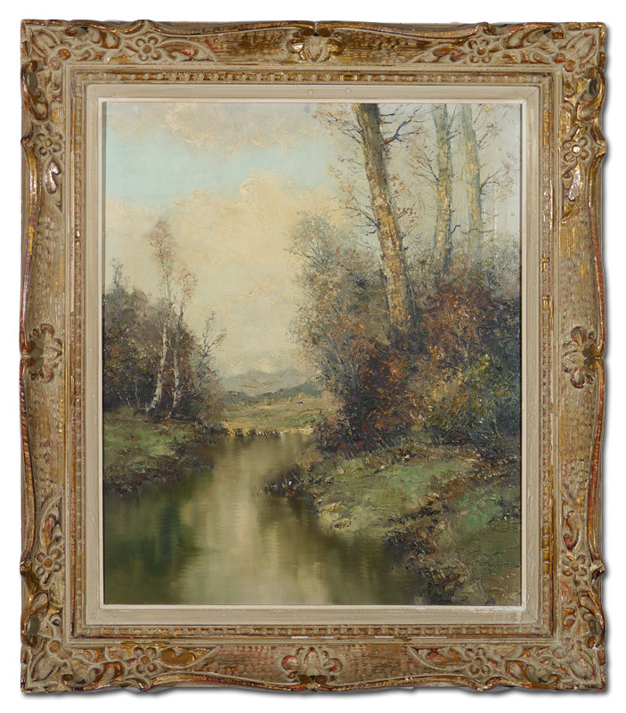 BAUER, Willi, (German, 1923- ): Landscape with Stream, Oil/Canvas, 23 1/2'' x 19 1/2'', signed lower right, encased in a pierced carved frame 30 1/2'' x 26 1/4''.