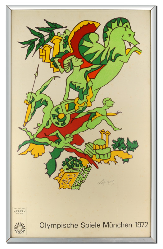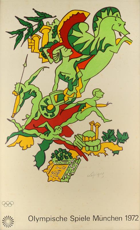 LAPICQUE, Charles, (French, 1898-1988): 1972 Olympic Poster, Sight size 39'' x 24 1/2'', signed, encased in metal frame 41'' x 26 1/2''.