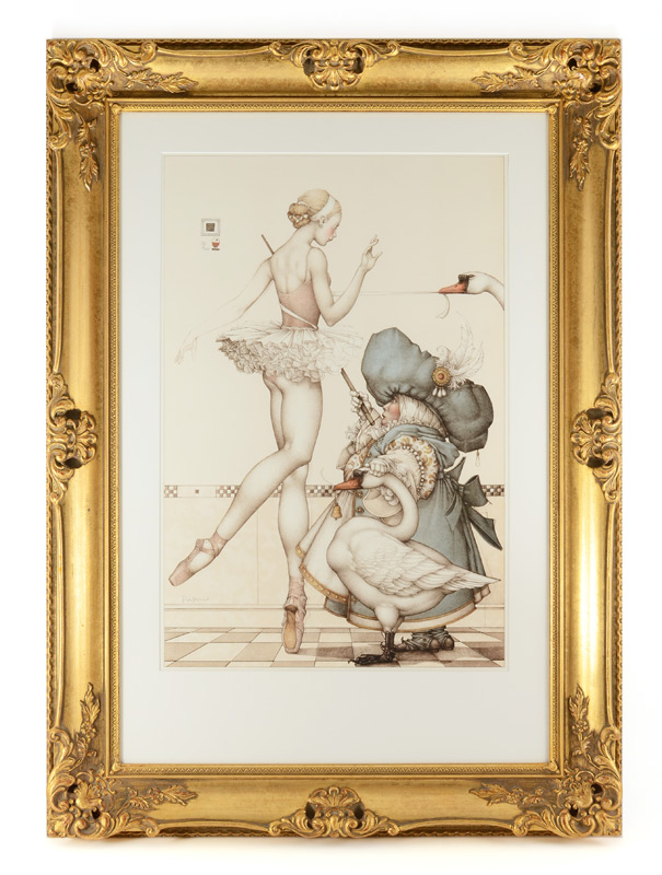 PARKES, Michael, (American, 1944- ): ''Ballet Mistress'', Lithograph, Sight size 28'' x 18'', pencil signed, #'d 13/160, custom carved and gilded frame 33'' x 31 1/2''.