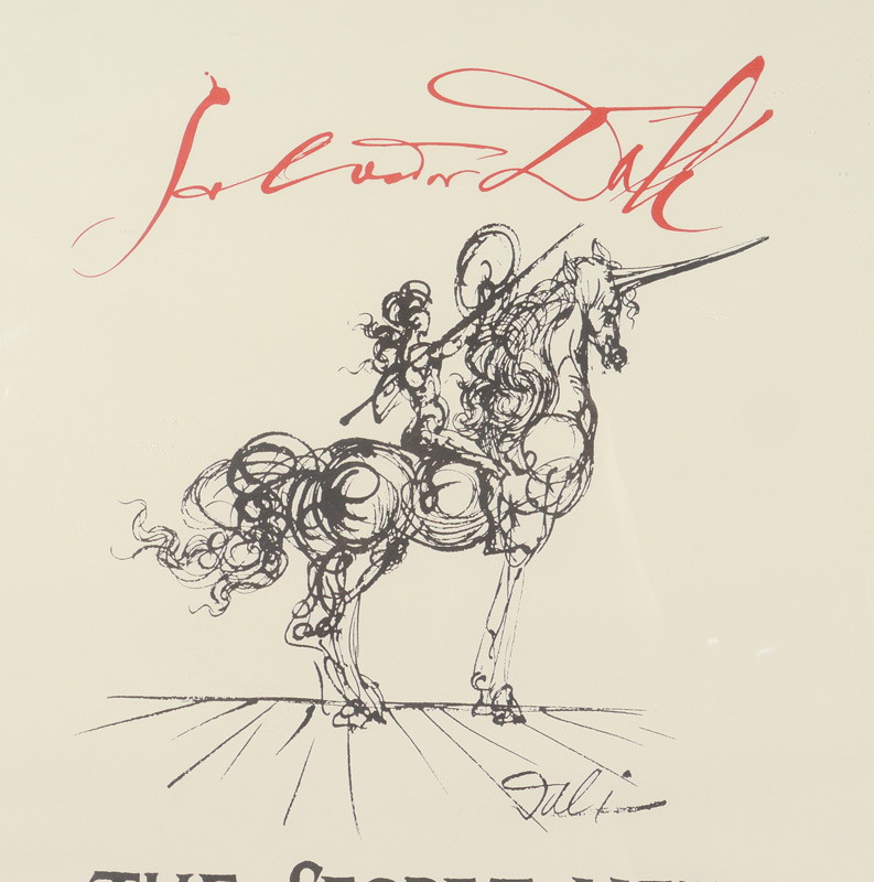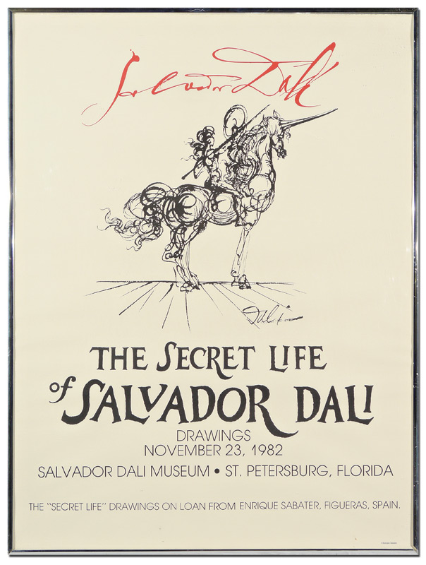 POSTER FOR THE SECRET LIFE OF SALVADOR DALI: Exhibition in 1982 at the Salvador Museum in St. Petersburg, Florida, printed by Enrique Sabater, Sight size 26 1/2'' x 19 1/2'', metal frame 27'' x 20''.