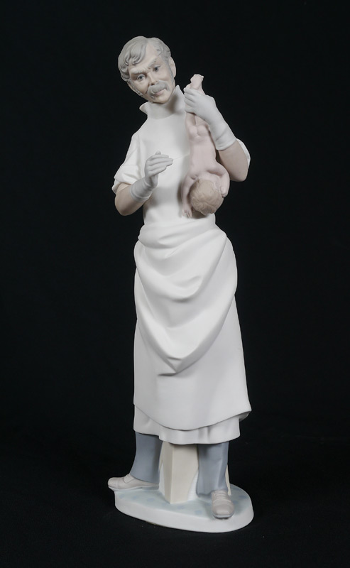 LLADRO PORCELAIN FIGURINE: Obstetrician #4763, Salvador Furio sculptor, issued 1971 retired 1973, Matte finish, 16.25''.