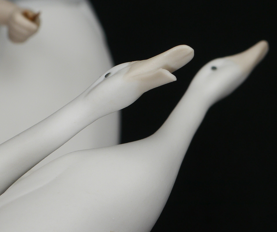CONDITION: 1) Twig switch gone beyond hand. Missing bottom beak on one goose, see close up. 2) Glue visible where book's in hand.