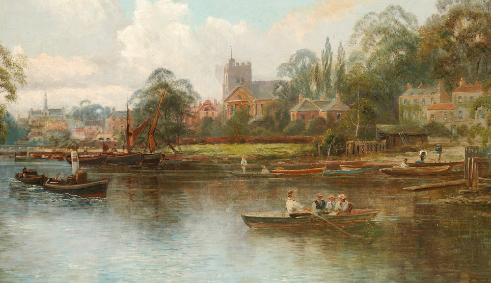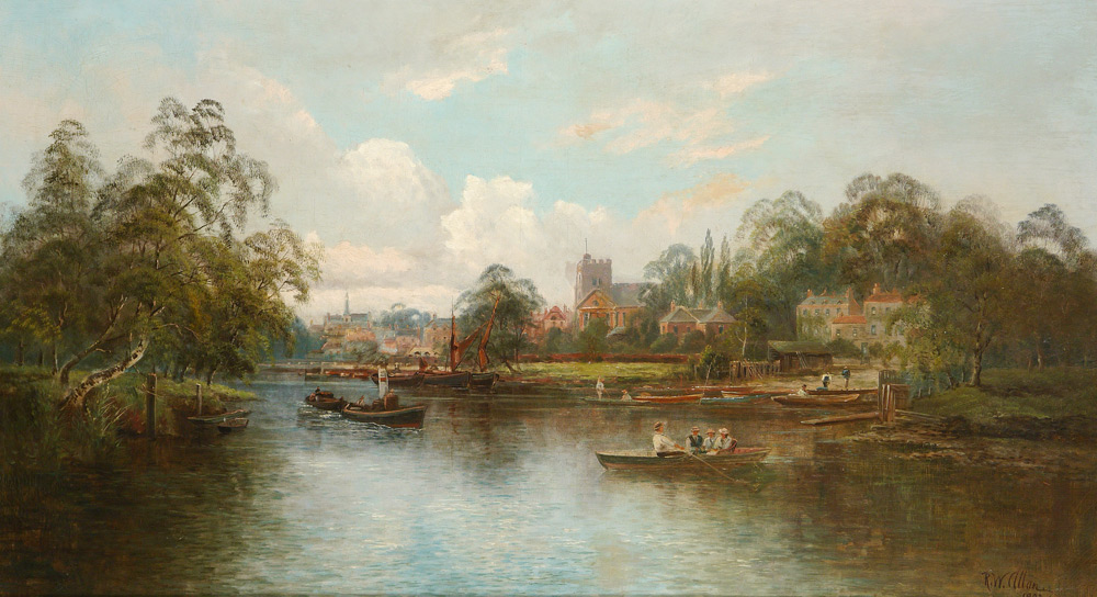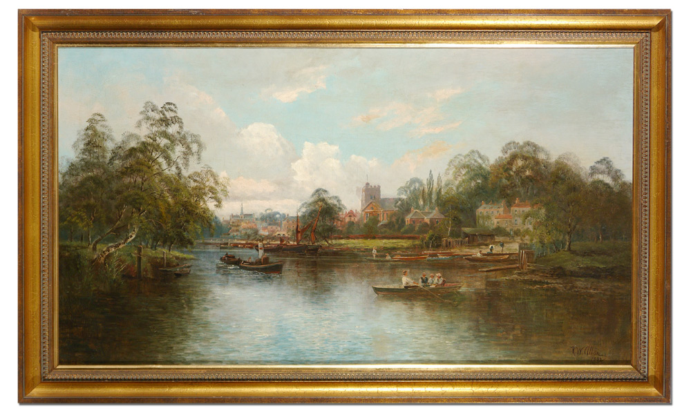 ALLAN, Robert Weir, (British, 1852-1942): ''The Thames at Twickenham'', Oil/Canvas, 24'' x 42'', signed lower right, dated 1902, framed 28'' x 46 1/2''.