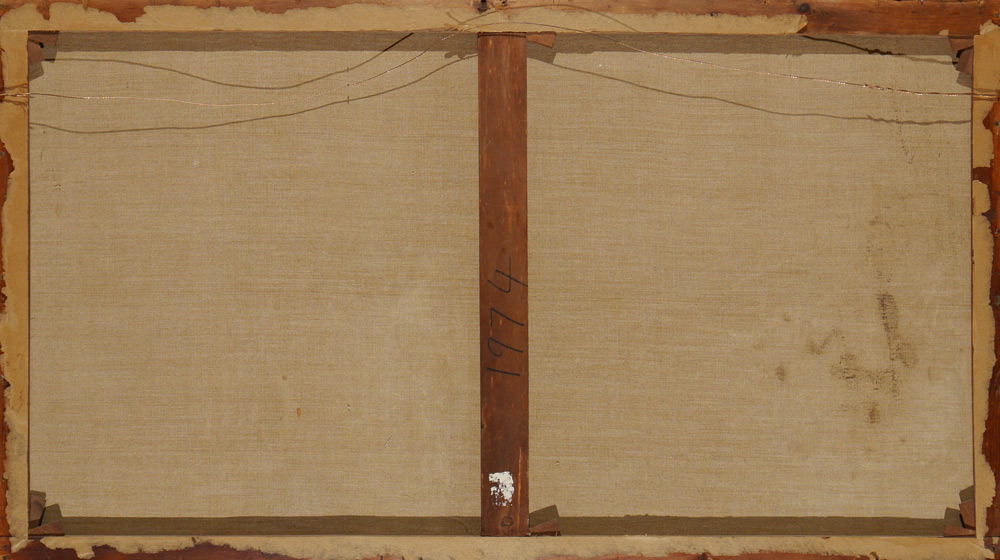 CONDITION: Relined, scattered craquelure throughout, several spots of touch-up inpaint, several very minor flecks of paint loss, sold as is.