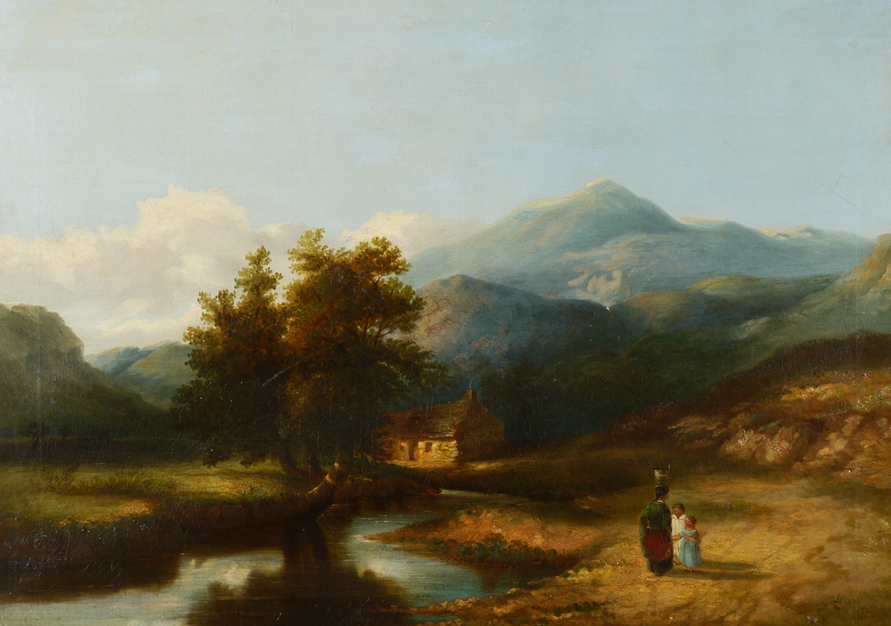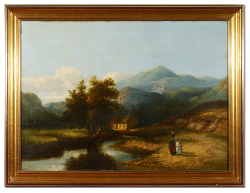 19th C ENGLISH SCHOOL LANDSCAPE PAINTING: Oil/Canvas, 25 3/4'' x 36'', no visible signature, contemporary frame 31 1/2'' x 41''.