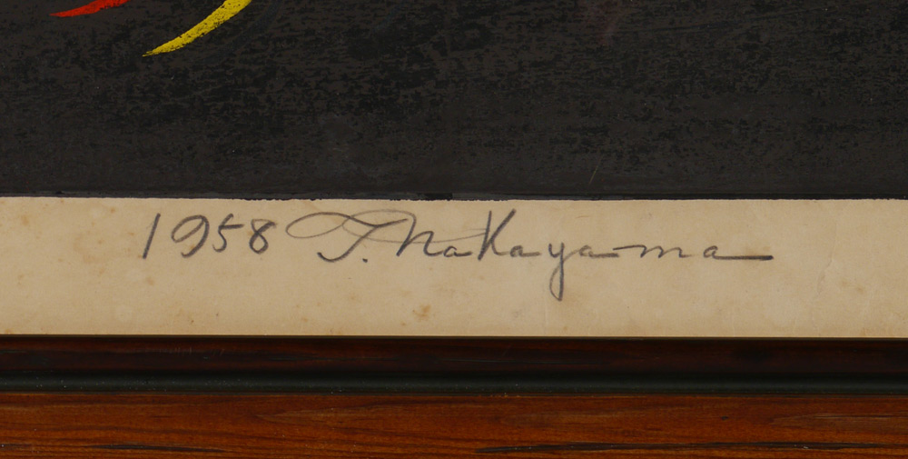 NAKAYAMA, Tadashi, (Japanese, 1927- ): ''Incarnation Raku'', Woodblock Print, Sight size 32'' x 22 1/4'', pencil signed lower left, dated 1958, custom frame 35'' x 26''.
