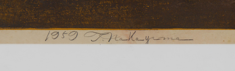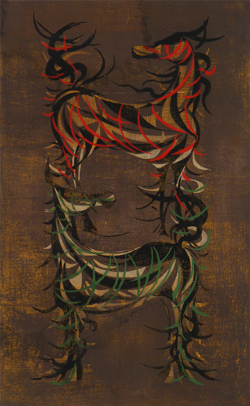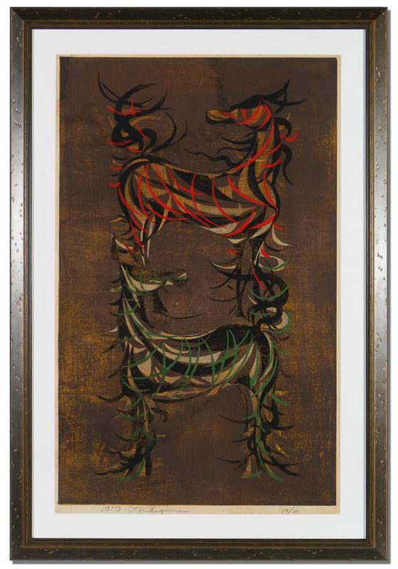 NAKAYAMA, Tadashi, (Japanese, 1927- ): 2 Horses, Woodblock, Sight size 39'' x 24 1/4'', pencil signed lower left, dated 1959, #'d lower right 19/35, custom frame 47'' x 32 1/2''.
