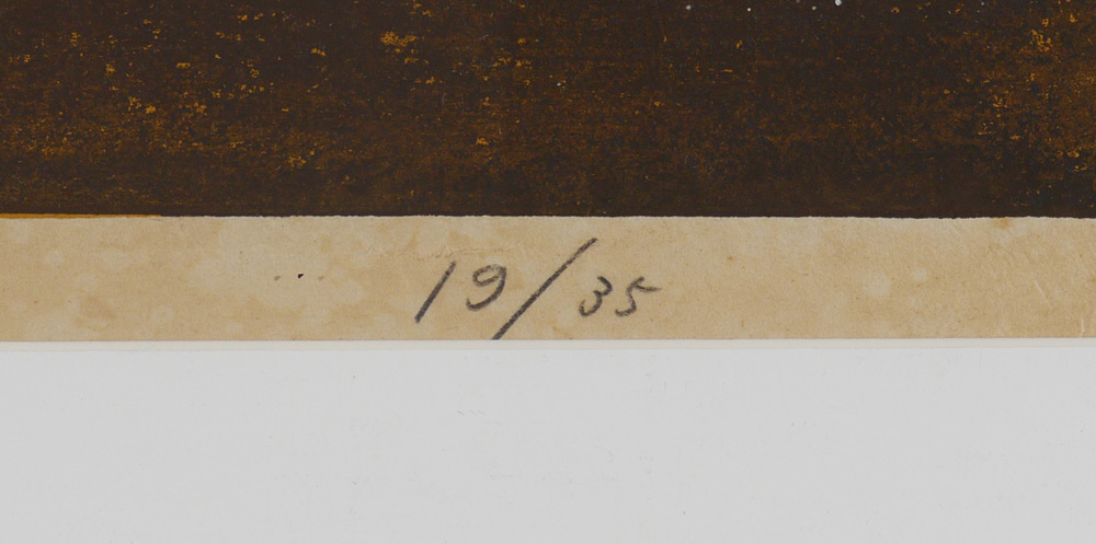 CONDITION: Sporadic spotting visible in the margins, creasing from being rolled, there is a small tear in the upper mid margin, pale water damage visible near upper mid margin extending down into the image, not examined out of the frame.