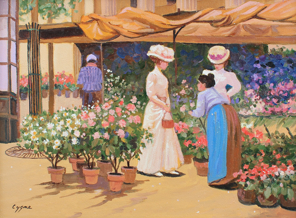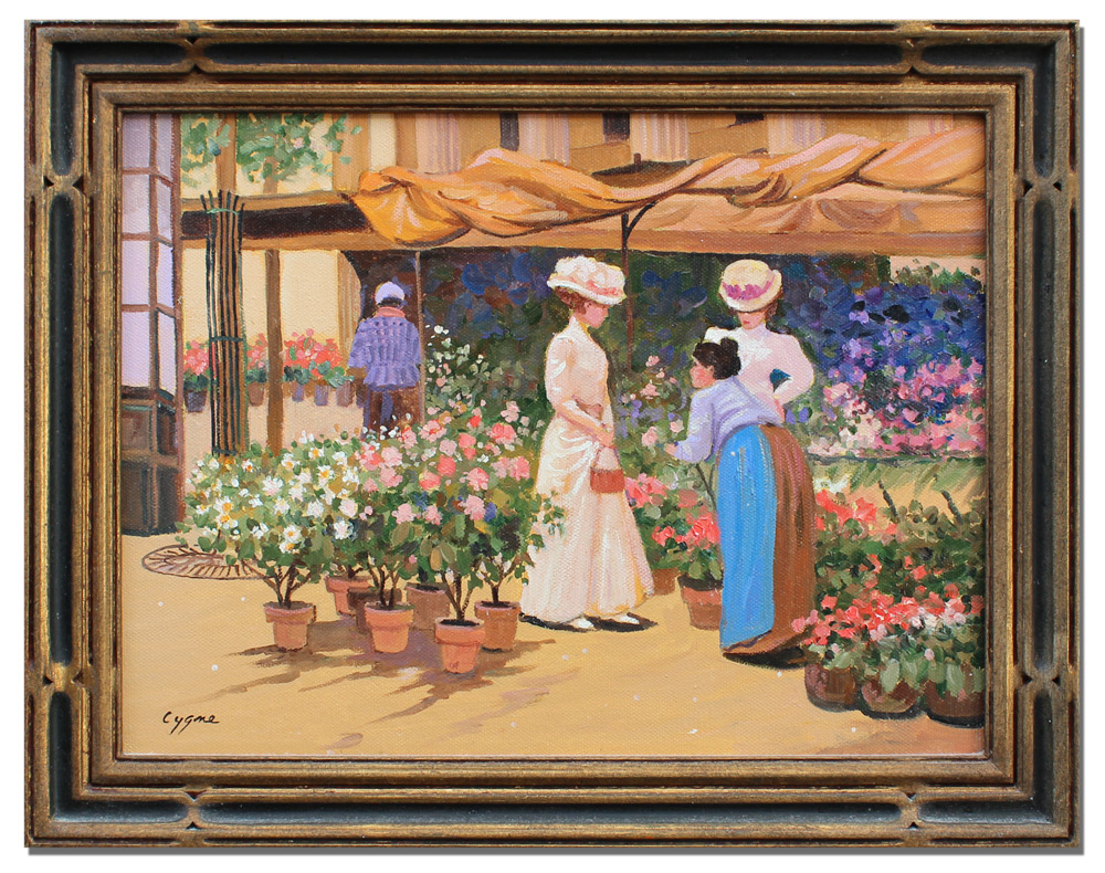 CYGNE, E.J., (French-American, 1929- ): Paris Flower Market, Oil/Canvas, 9'' x 12'', signed lower left, framed, 11 1/8'' x 14''.