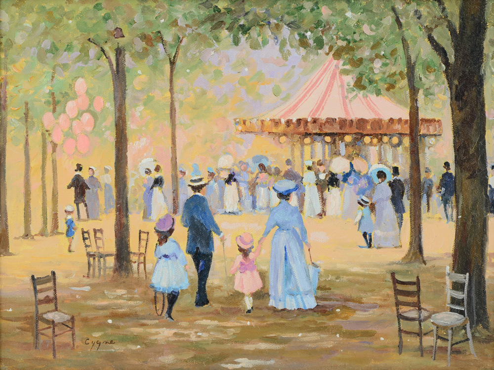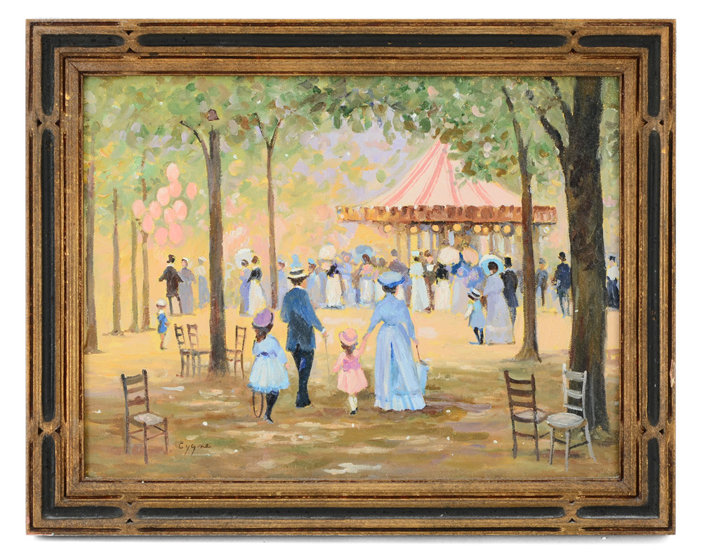 CYGNE, E.J., (French-American, 1929- ): Paris Street Scene, Oil/Canvas, 9'' x 12'', signed lower left, framed, 11 1/8'' x 14''.