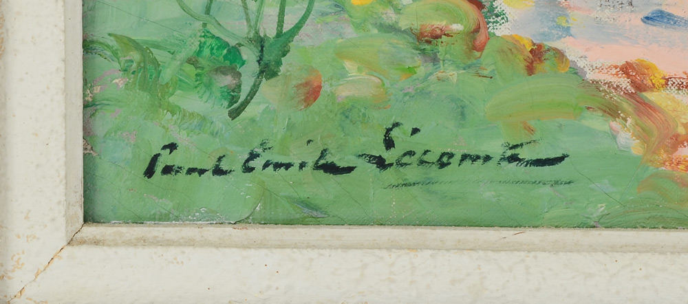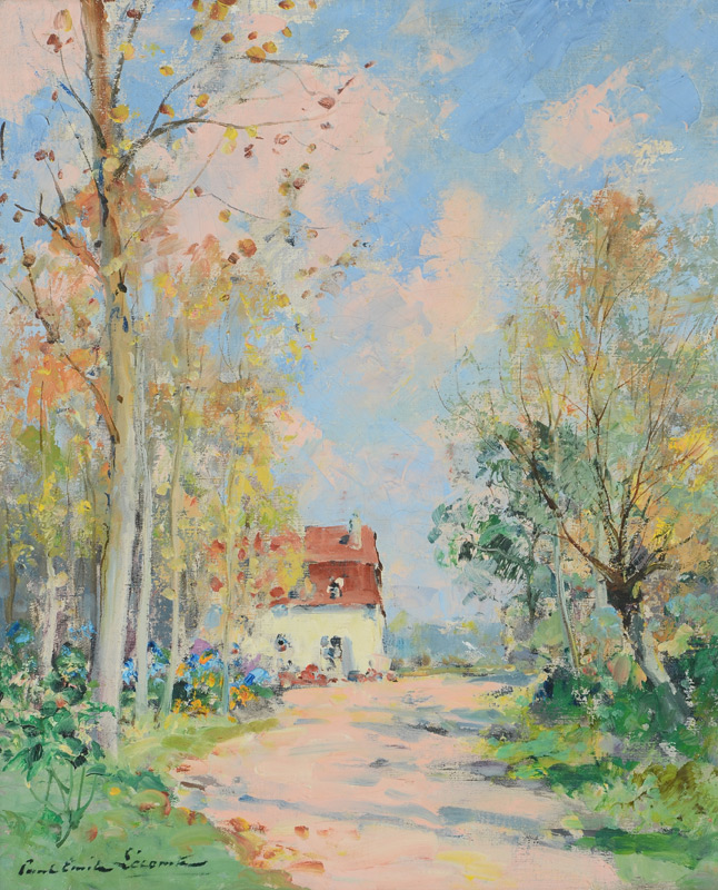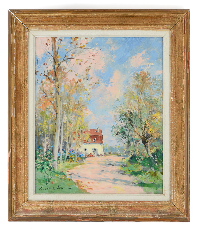 LECOMTE, Paul Emile, (French-American, 1877-1950): Cottage on a Country Trail, Oil/Canvas, 18'' x 15'', signed lower left, framed 23 1/2'' x 20 1/2''.