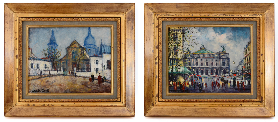 DALI, Louis, (French, 1905-2001): Pair of Parisian Street Scenes, Oils/Canvas, 8 3/4'' x 10 1/2'', signed lower right, matching frames 13 3/4'' x 15 3/4''.