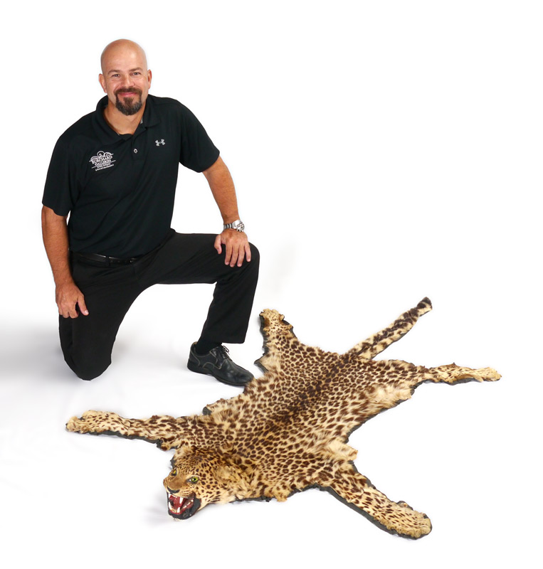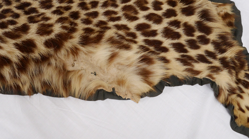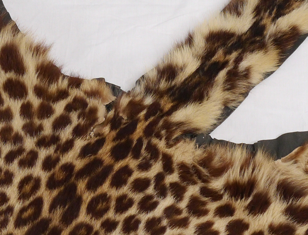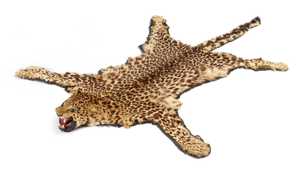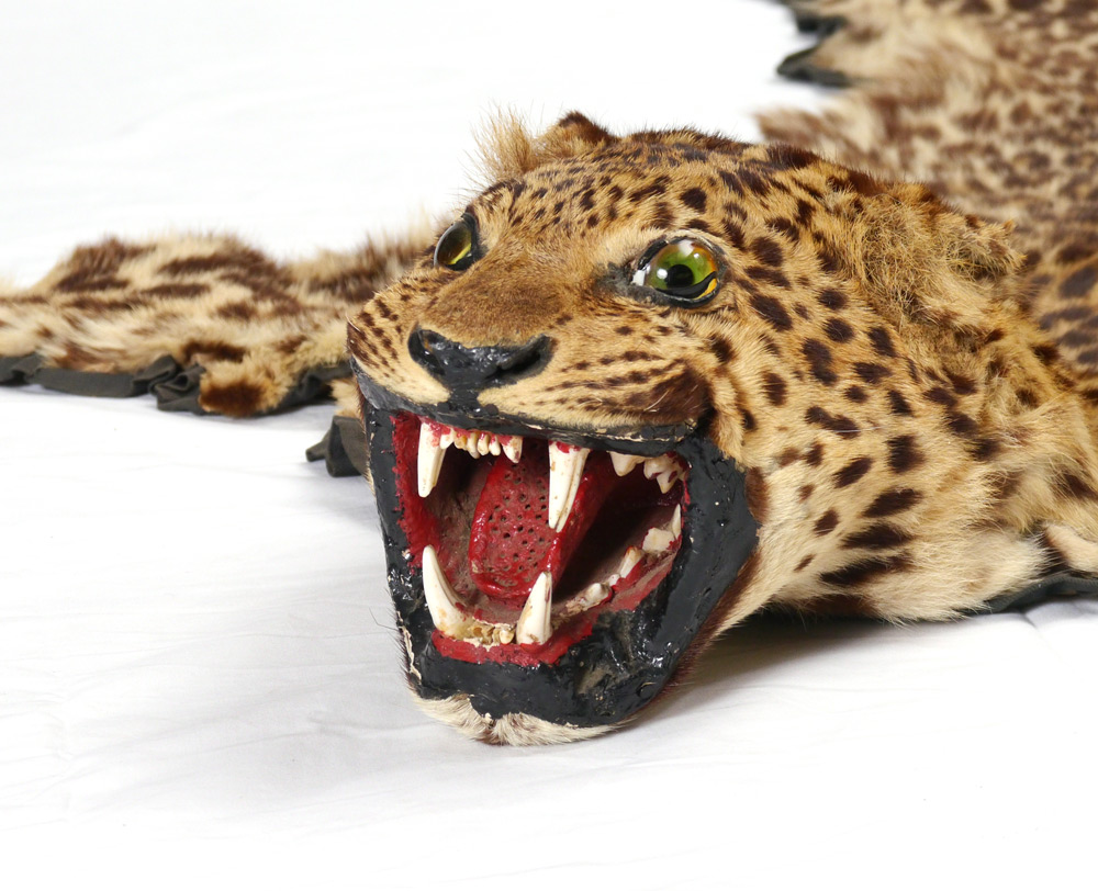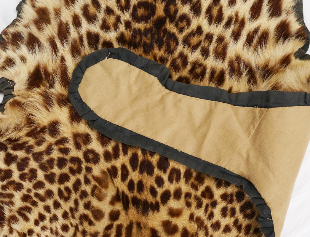 TAXIDERMY LEOPARD RUG MOUNT: Mounted to linen, overall full open measures 82'' long x 50 1/2'' x 6''