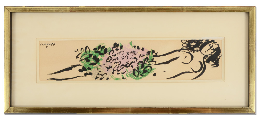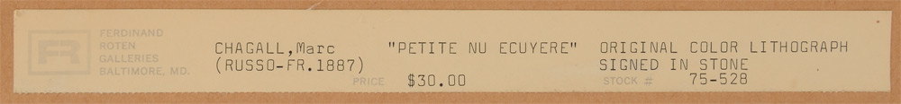 CHAGALL, Marc, (French-Russian, 1887-1985): ''Petite Ecuyere'', Color Lithograph, Sight size 3'' x 14'', Ferdinand Roten Gallery label affixed verso as well as the Walter Maibaum label, framed 8 5/8'' x 19 3/8''.