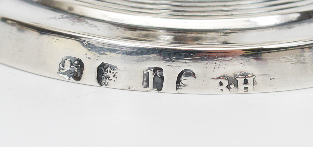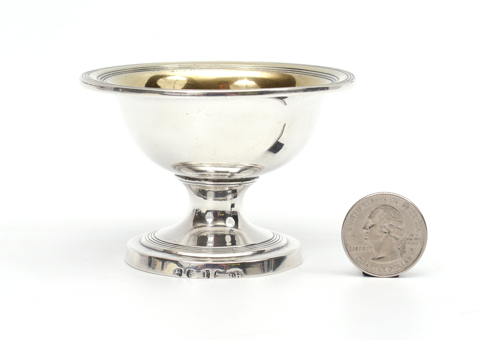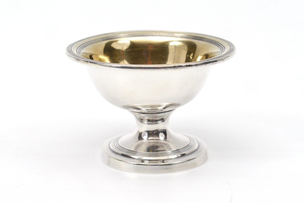 1792 ROBERT HENNELL STERLING SILVER MASTER SALT: Hallmarked 1792, London, and Robert Hennell I makers mark. Vermeil wash bowl, measures 2 1/4 h. x 3 1/4'', approx. 2.4 troy oz.