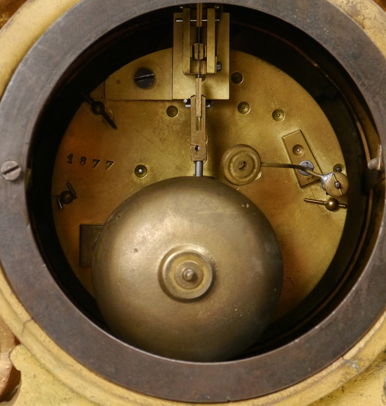 CONDITION: Wear to gilt, one insert has shifted, repaint to dial, currently running however not guaranteed to continue. Key and pendulum in office.