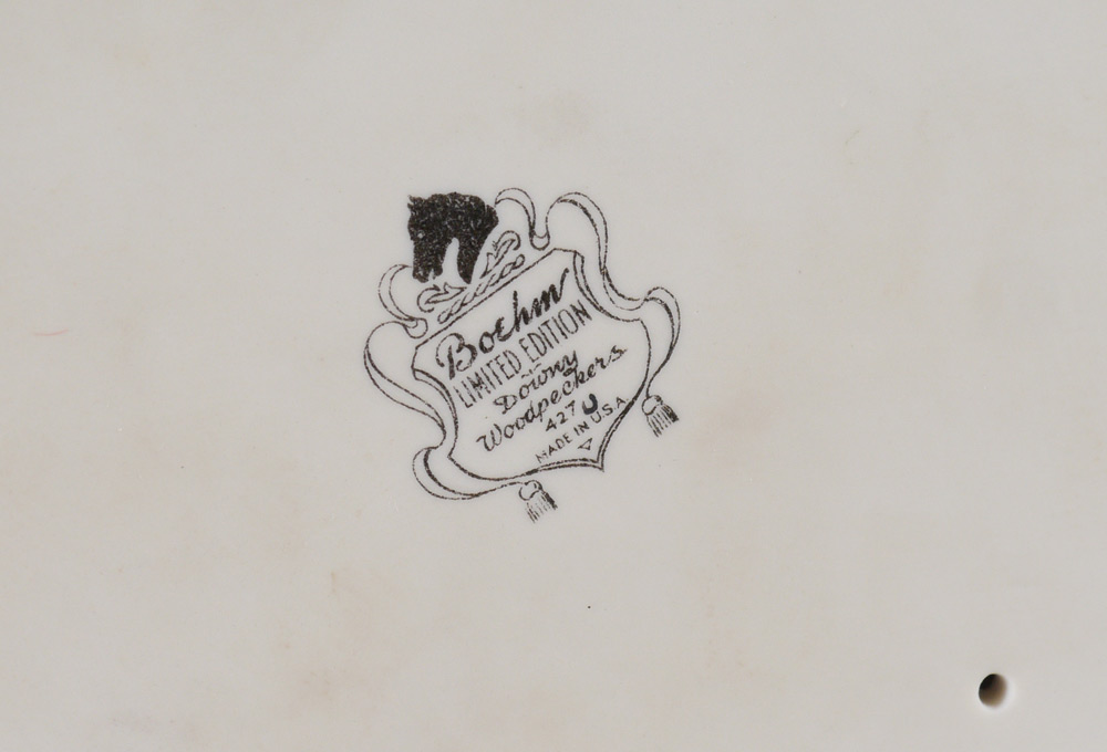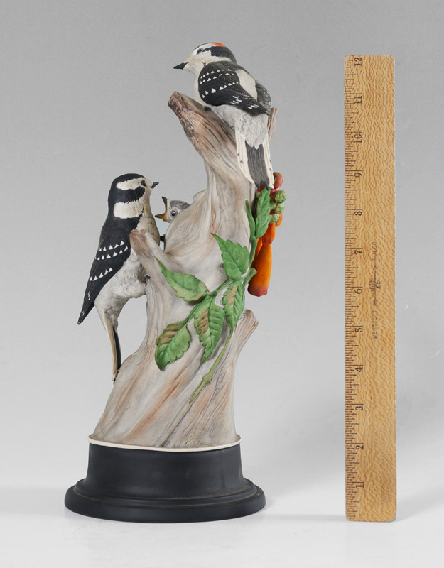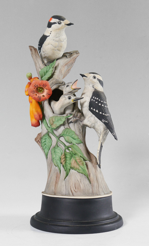 BOEHM PORCELAIN FIGURAL GROUP: Downing Woodpeckers, #427, 13'' tall. Limited edition, made in USA.