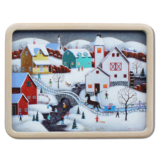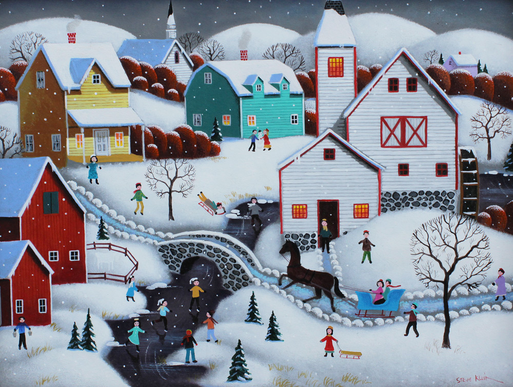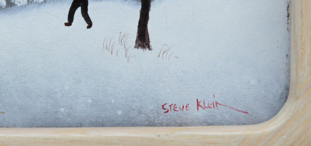 KLEIN, Steven, (American, 20th Century): ''Millpond Skaters'', Oil/Board, Sight size 11 3/4'' x 15 5/8'', signed lower right, labeled verso with title, contemporary framing 13 1/2'' x 17 1/4''.