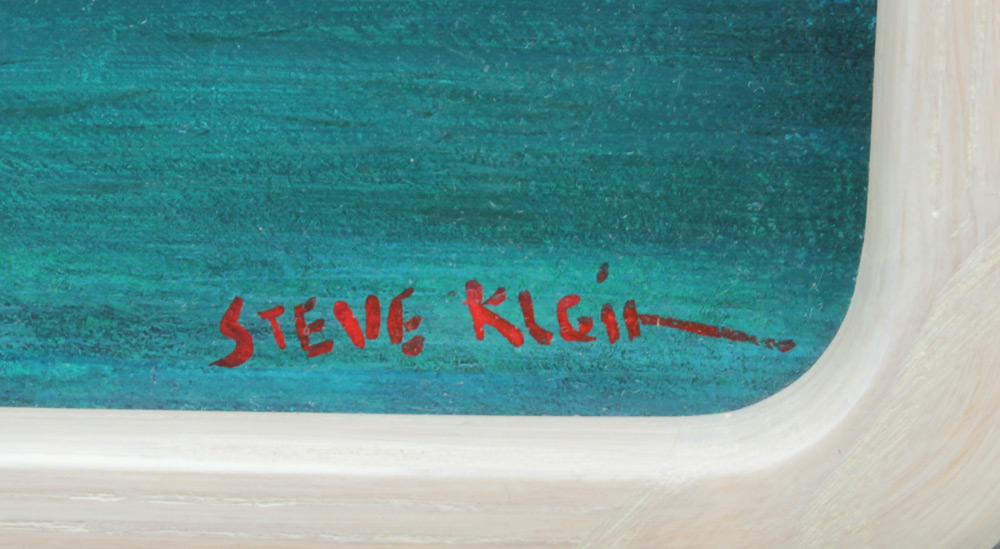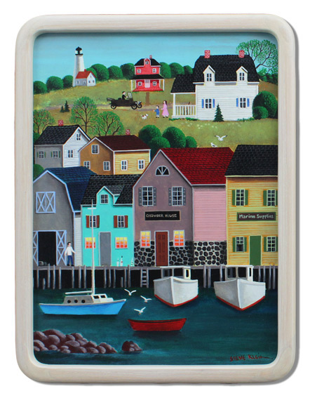 KLEIN, Steven, (American, 20th Century): Naive Coastal Scene, Oil/Board, Sight size 15 1/2'' x 11 1/2'', signed lower right, custom contemporary frame 17 1/2'' x 13''.