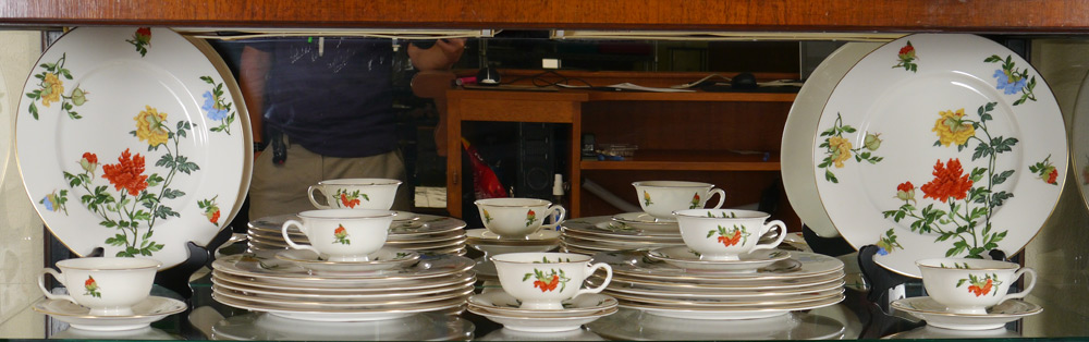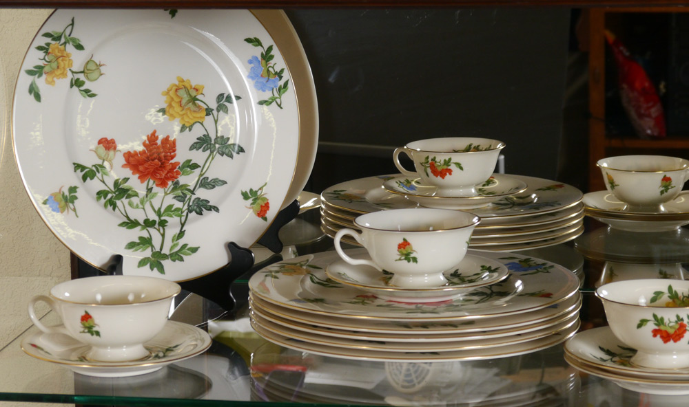 CASTLETON ''MA LIN'' FINE CHINA: Ma Lin pattern by Ching Chih Yee. 12 dinner plates ( 10 3/4'') and 5 cups with 6 saucers.