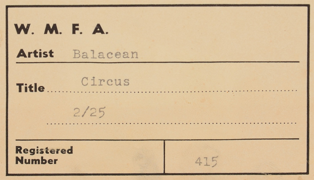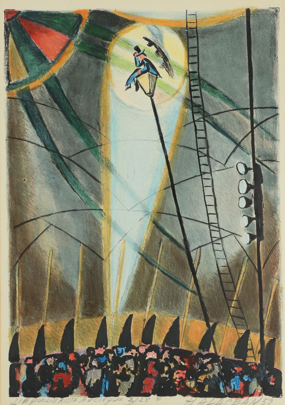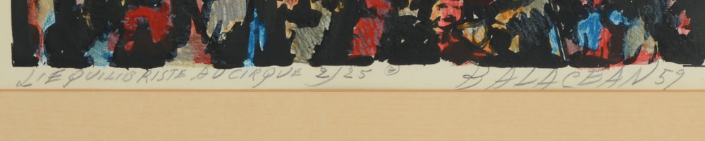 BALACEAN: ''L' Equilibriste au Cirque'', Lithograph, Sight size 21 1/2'' x 15 1/4'', pencil signed lower right, dated '59, titled lower left, #'d 2/25, framed 30'' x 22 1/4''.