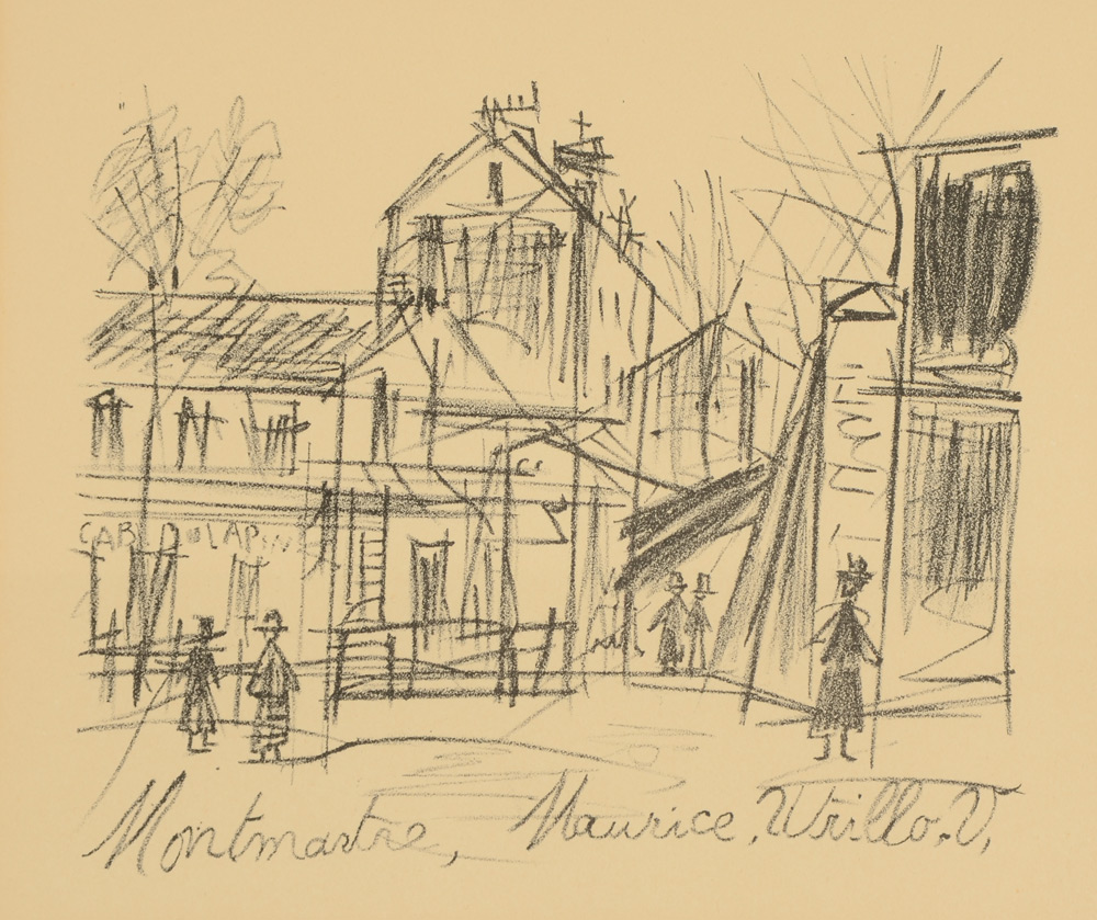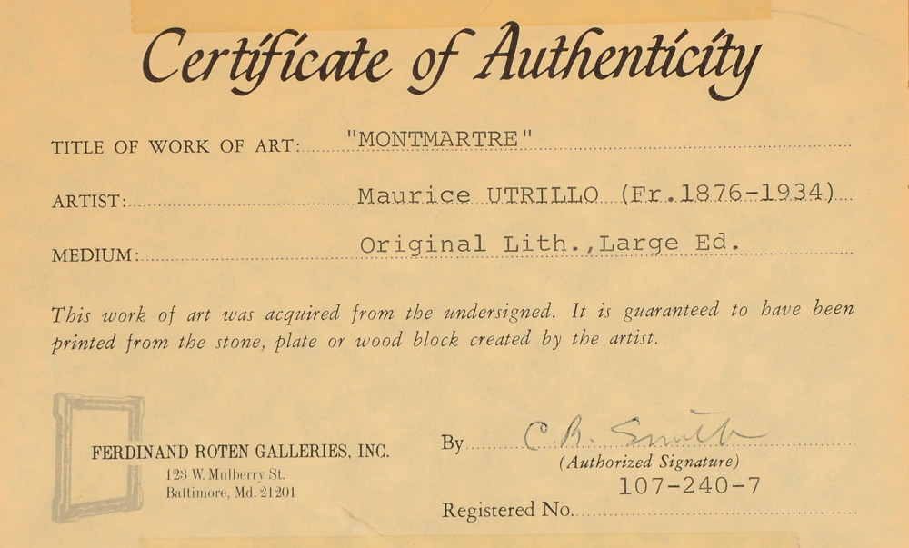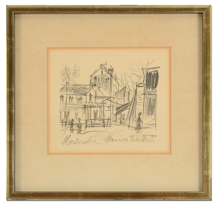 UTRILLO, Maurice, (French, 1883-1955): ''Monte Marte'', Lithograph, Sight size 6 1/2'' x 7 1/2'', signed and titled in the plate, Ferdinand Roten Gallery label affixed verso, framed 12'' x 12 5/8''.