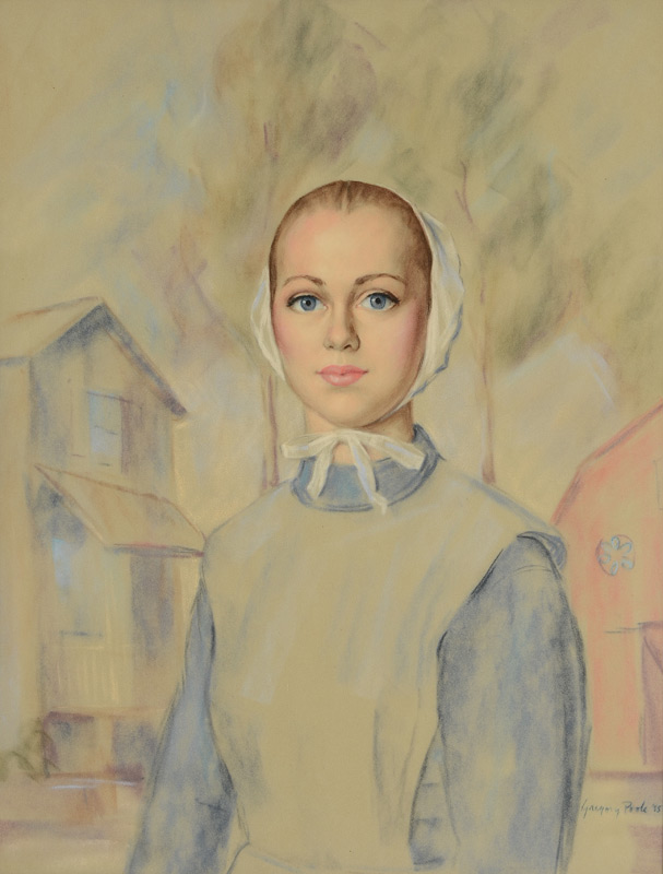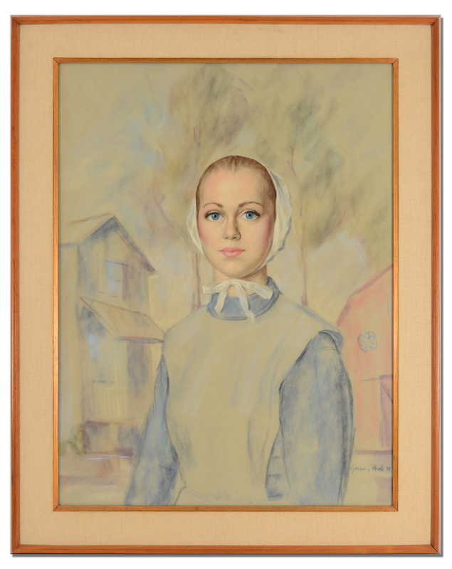 POOLE, Gregory, (American, 20th Century): Portrait of a Quaker Girl, Pastel, Sight size 25 1/4'' x 19 1/4'', signed lower right, dated '55, custom framing 31'' x 25''.