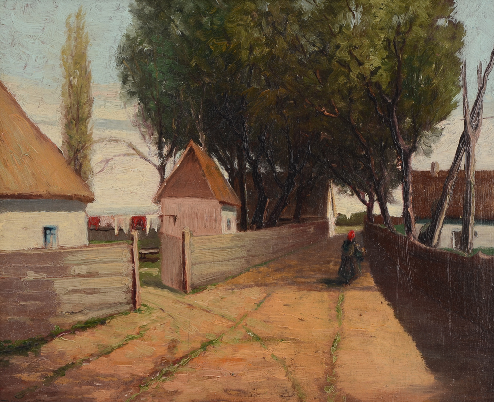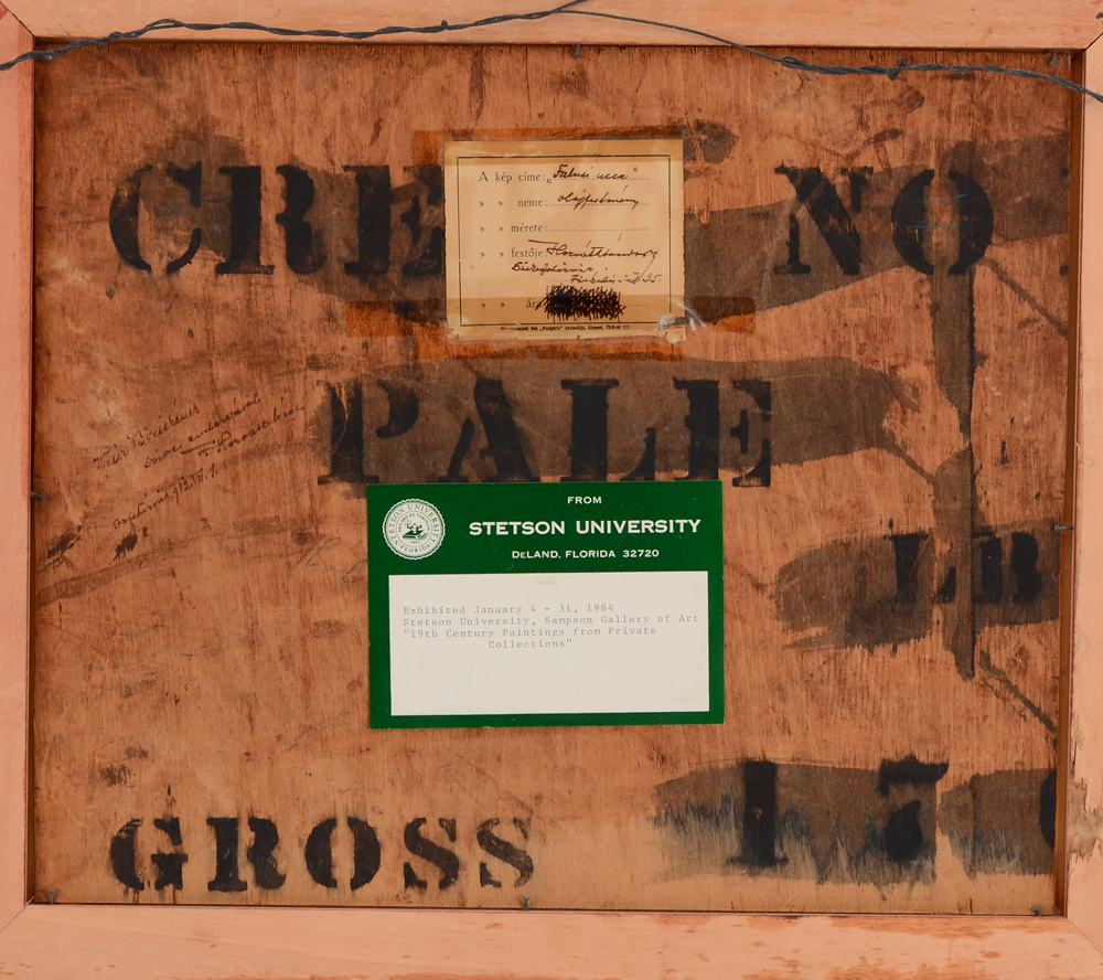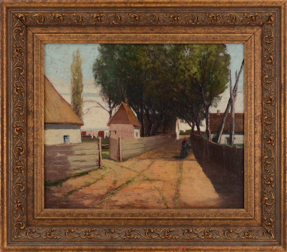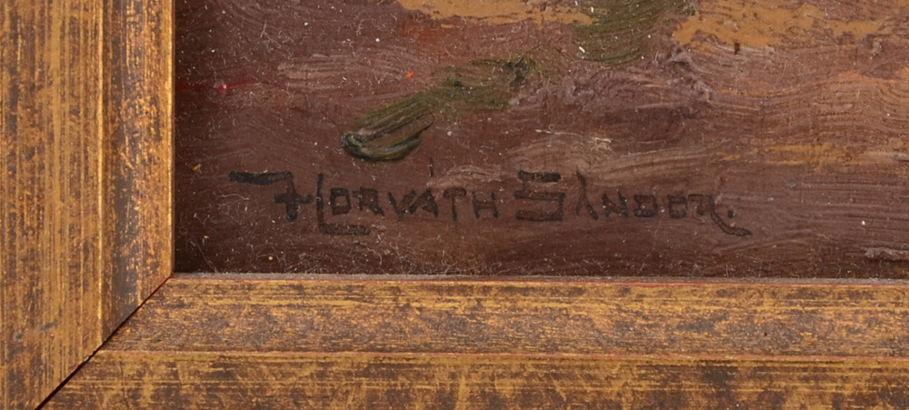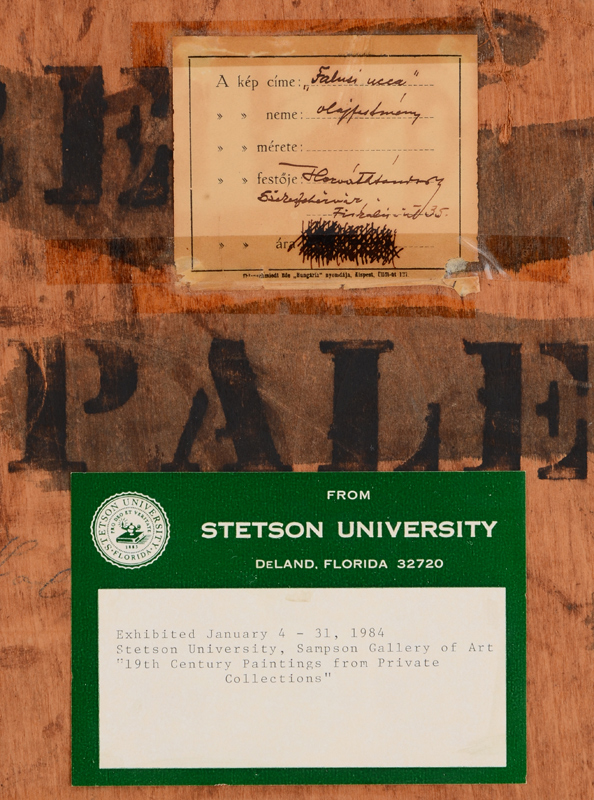 HORVATH, Sandor, (Hungarian, 20th Century): Hungarian Village Scene, Oil/Wood Panel, 12'' x 14 1/2'', signed lower left, framed, 15'' x 17 1/2'', Stetson University Exhibition label affixed verso, ''19th C. Paintings from Private Collections'', 1984, older label in Hungarian affixed.