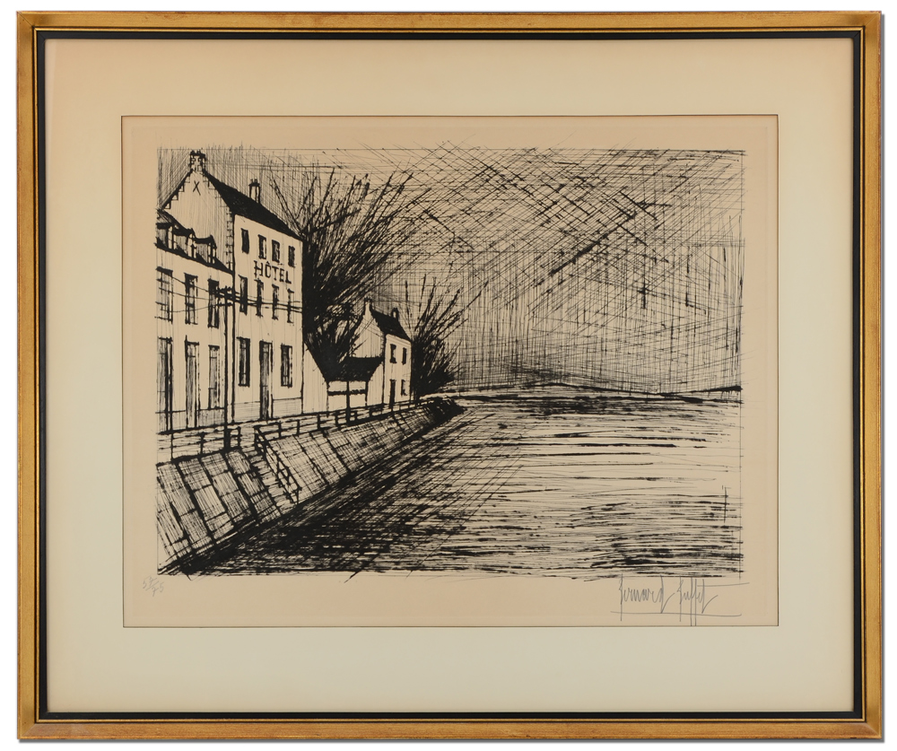 BUFFET, Bernard, (French, 1928-1999): ''Hotel Am Kanal'', Drypoint Etching, sight size 20 1/4'' x 26'', signed lower right, numbered lower left 57/75, fine frame, 29'' x 34''.