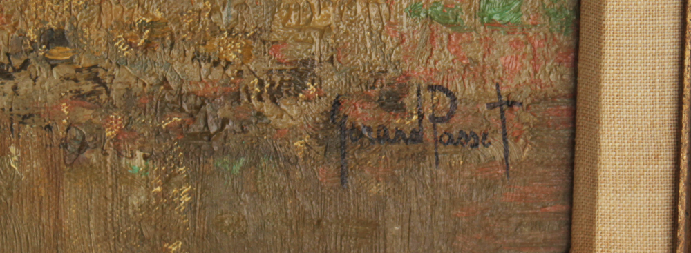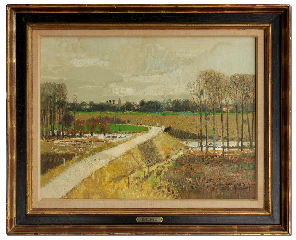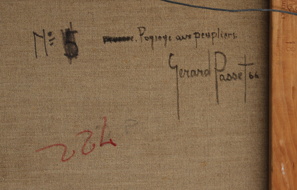PASSET, Gerard, (French, 1936- ): ''Paysage aux Peupliers'', French Landscape, Oil/Canvas, 18 1/4'' x 24 1/4'', signed lower right, signed and titled verso, painted and gilded frame 24 1/2'' x 30 1/2''.