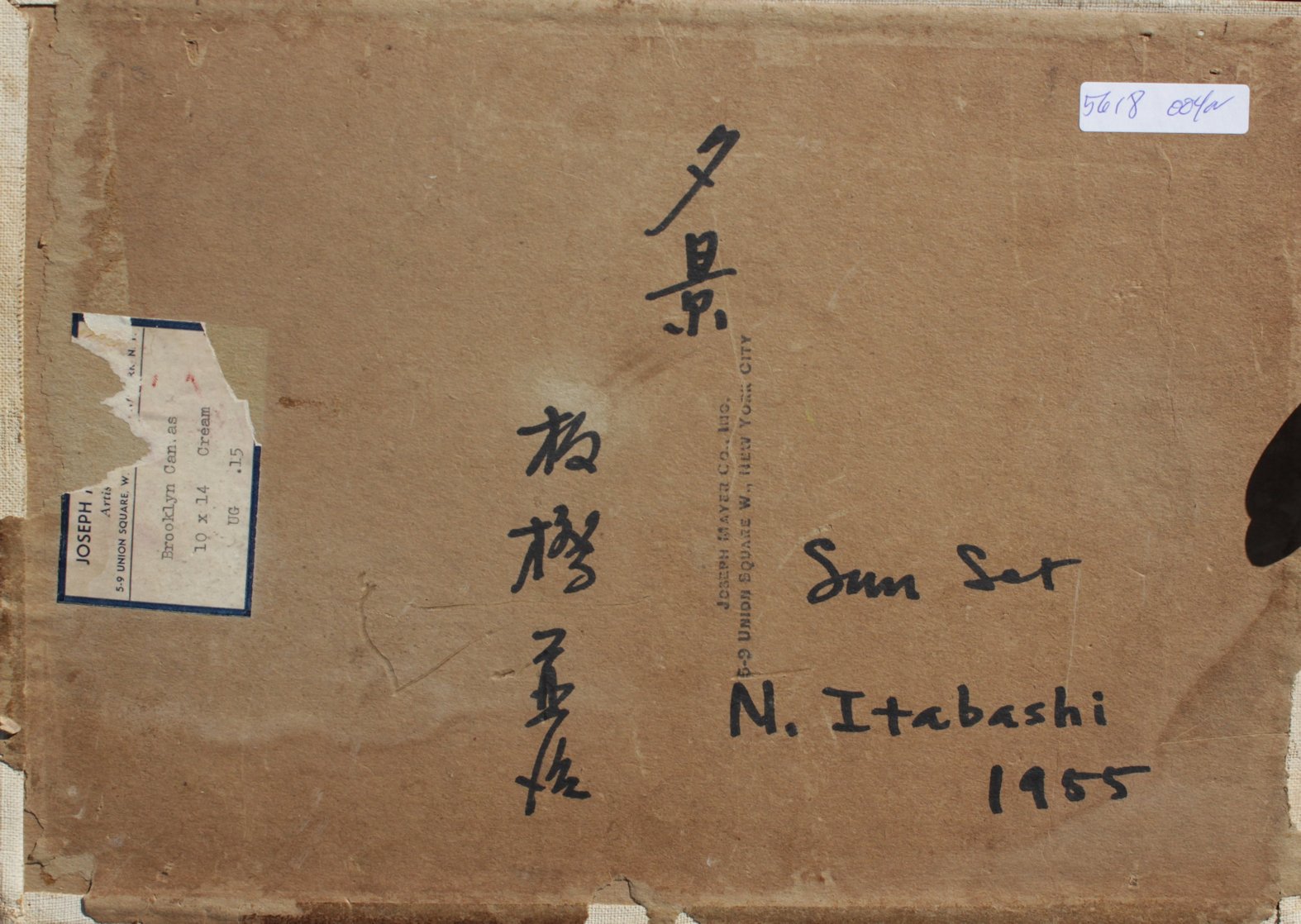 MODERNIST ITABASHI JAPANESE LANDSCAPE PAINTING: OIL/BOARD, 10'' x 14'', unframed, signed in Japanese verso and titled N. Itabashi.