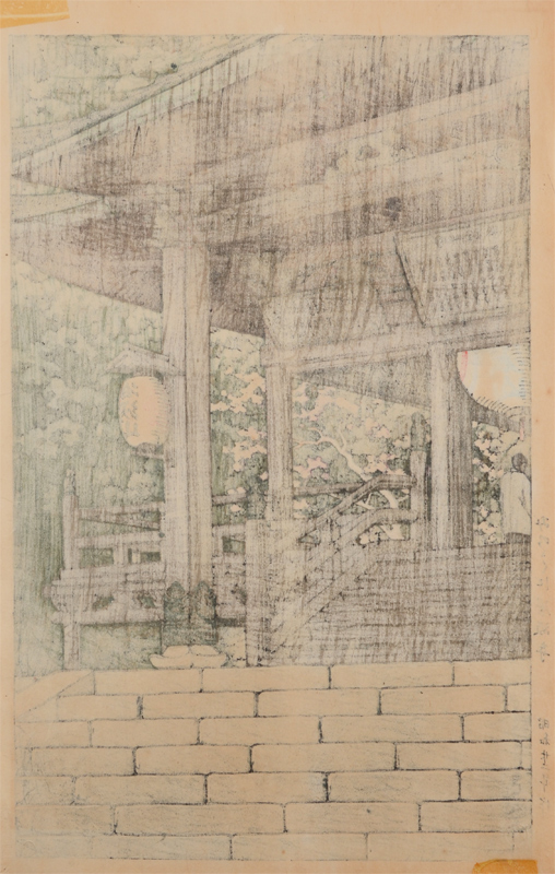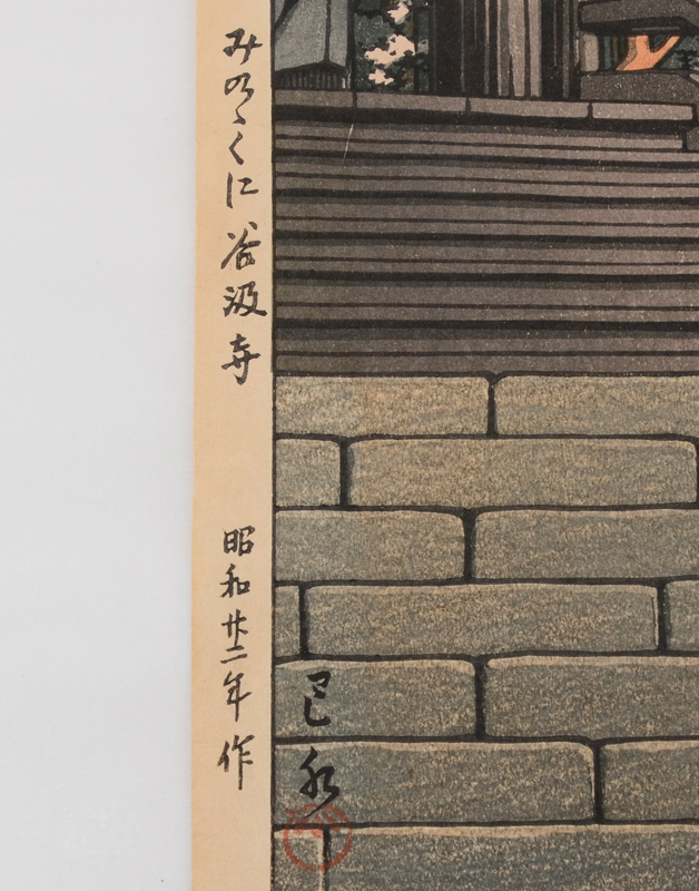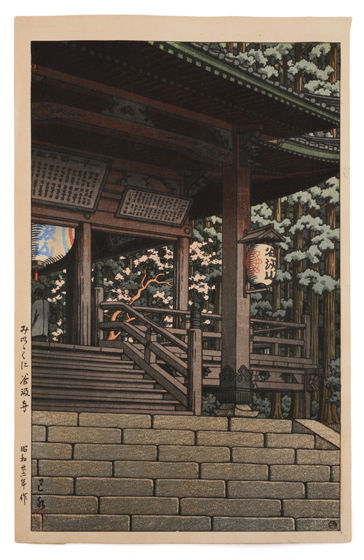 Kawase Hasui (Japan, 1883-1957.) ''Tanigumi Temple, Mino'', Woodblock print, Published by Watanabe, 14 1/4'' x 9 1/2'', unframed.