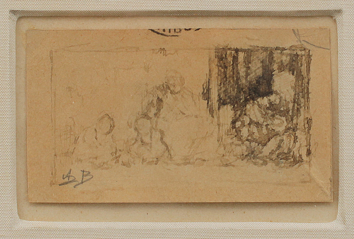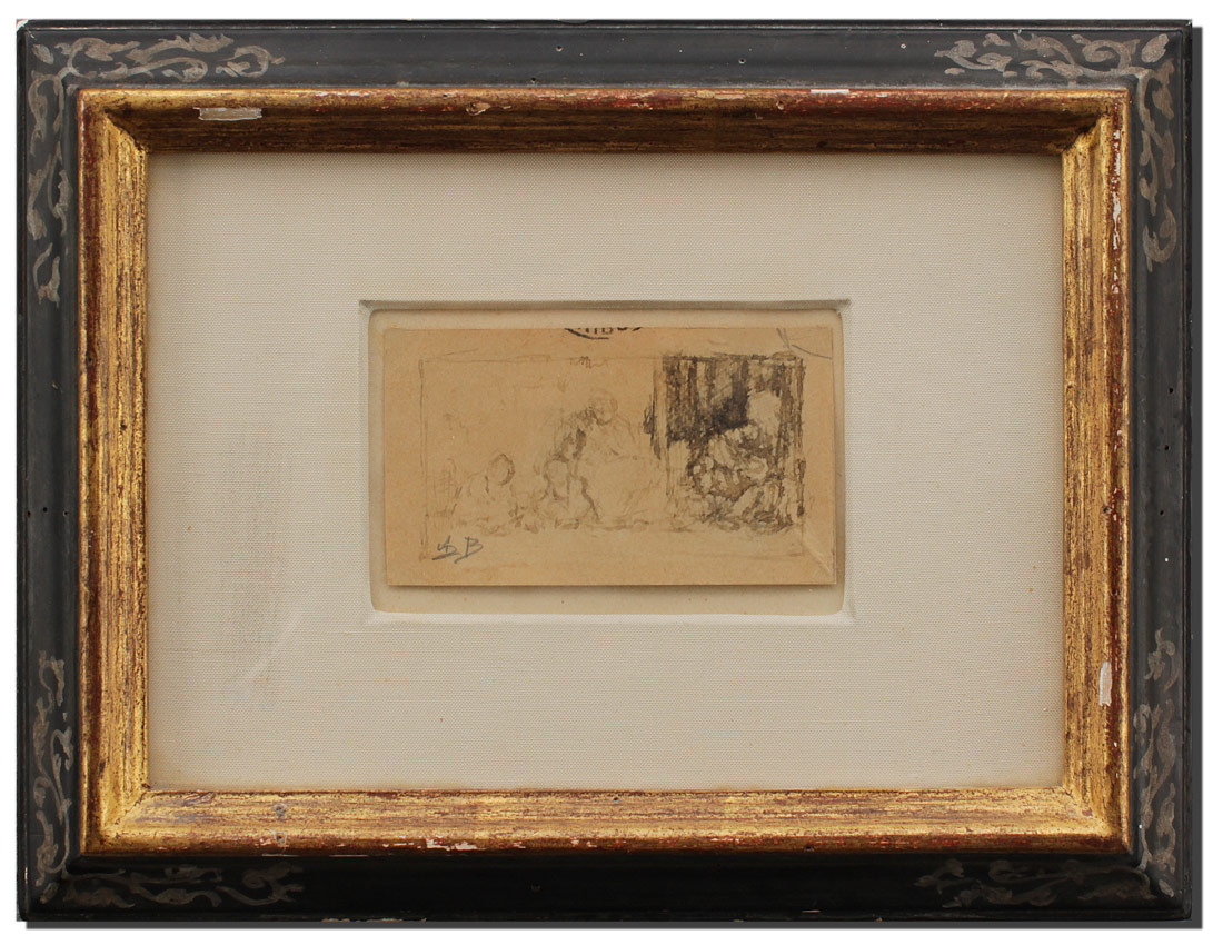 BROUET, Auguste, (French, 1872-1941): Study of Figures Seated in An Interior, watercolor, floated on a backboard, 1 3/4'' x 3 1/8'', monogramed lower left, custom period frame with minor wear, 6 1/2'' x 8 1/2''.