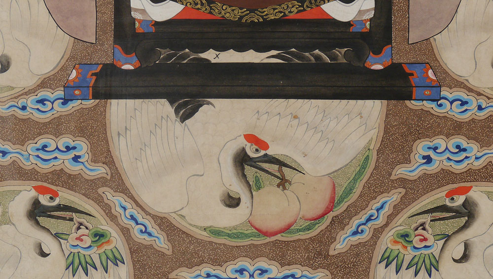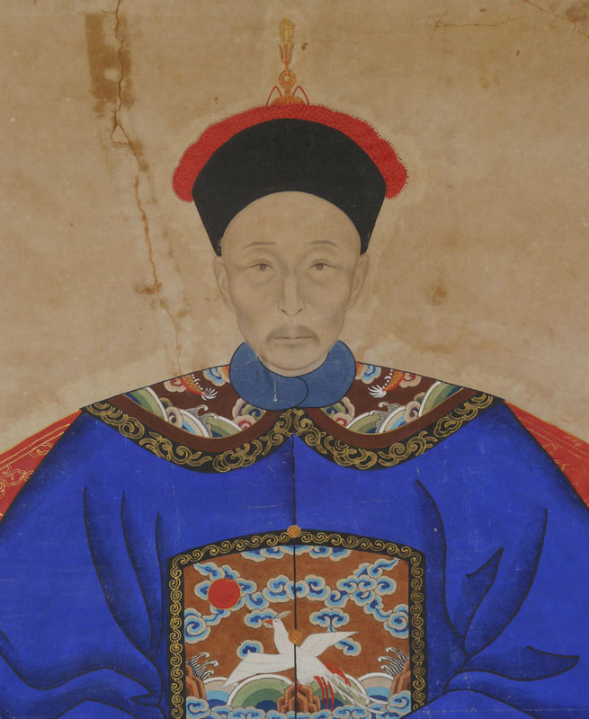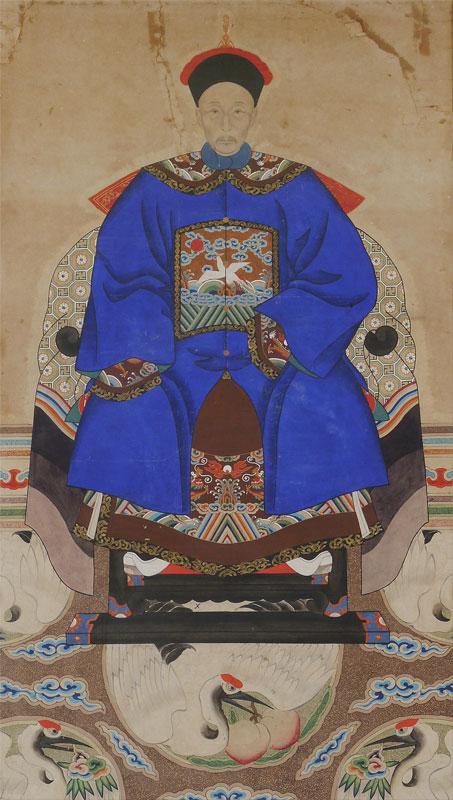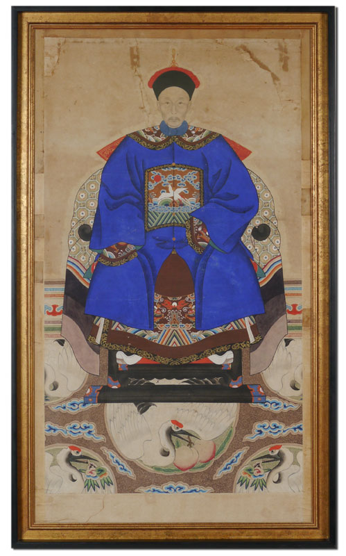 LARGE ORIENTAL ANCESTRAL PORTRAIT PAINTING: Watercolor, 36 1/2'' x 21'', framed, 43 1/4'' x 27''.