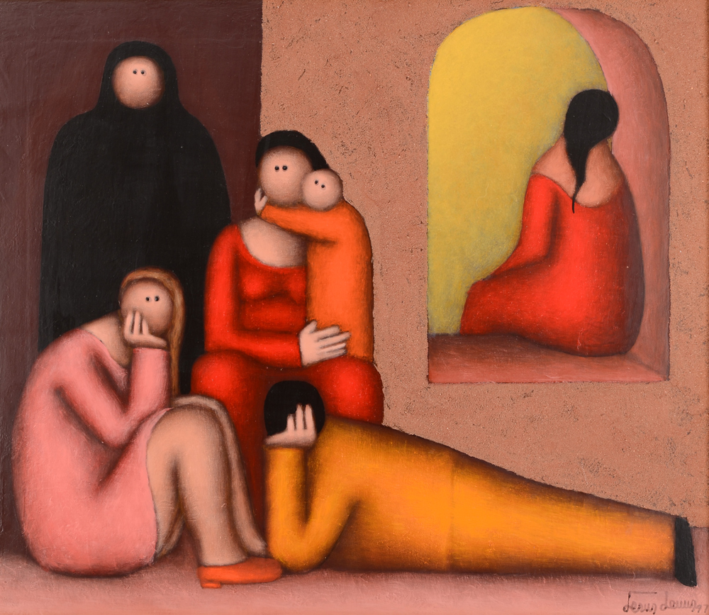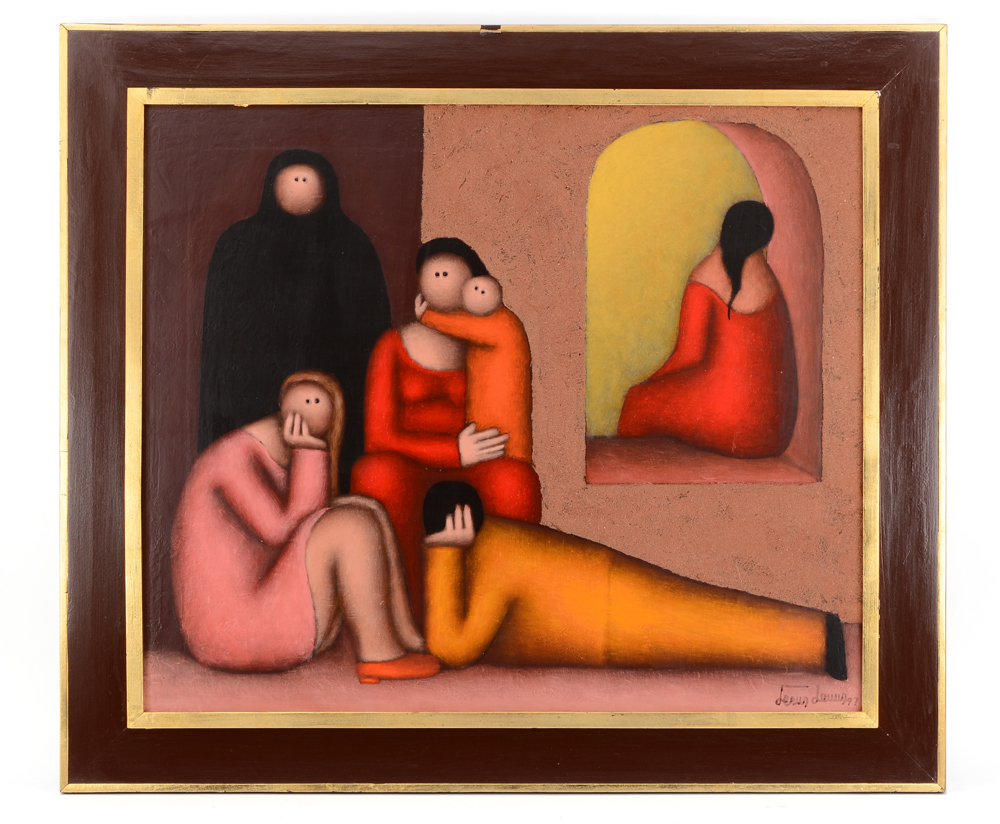 LEUUS, Jesus, (Mexican, 1948- ): Family, Oil/Canvas, 24'' x 27 3/4'', signed lower right, framed 29 3/4'' x 33 7/8''.