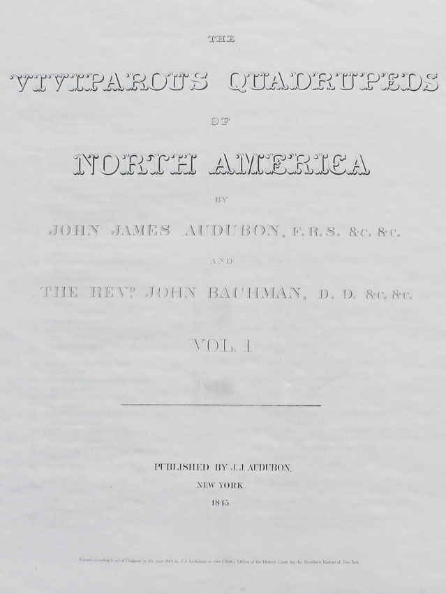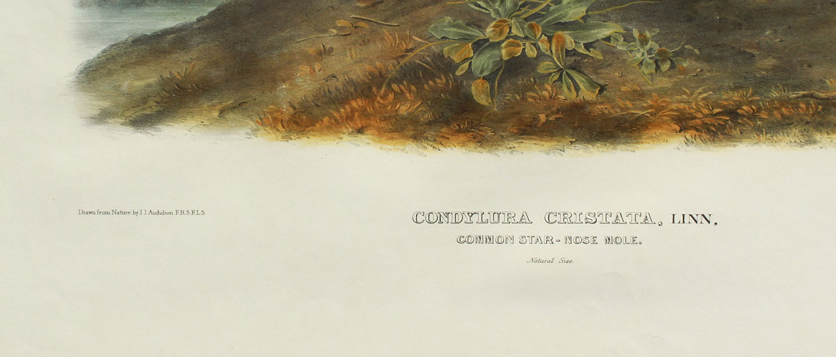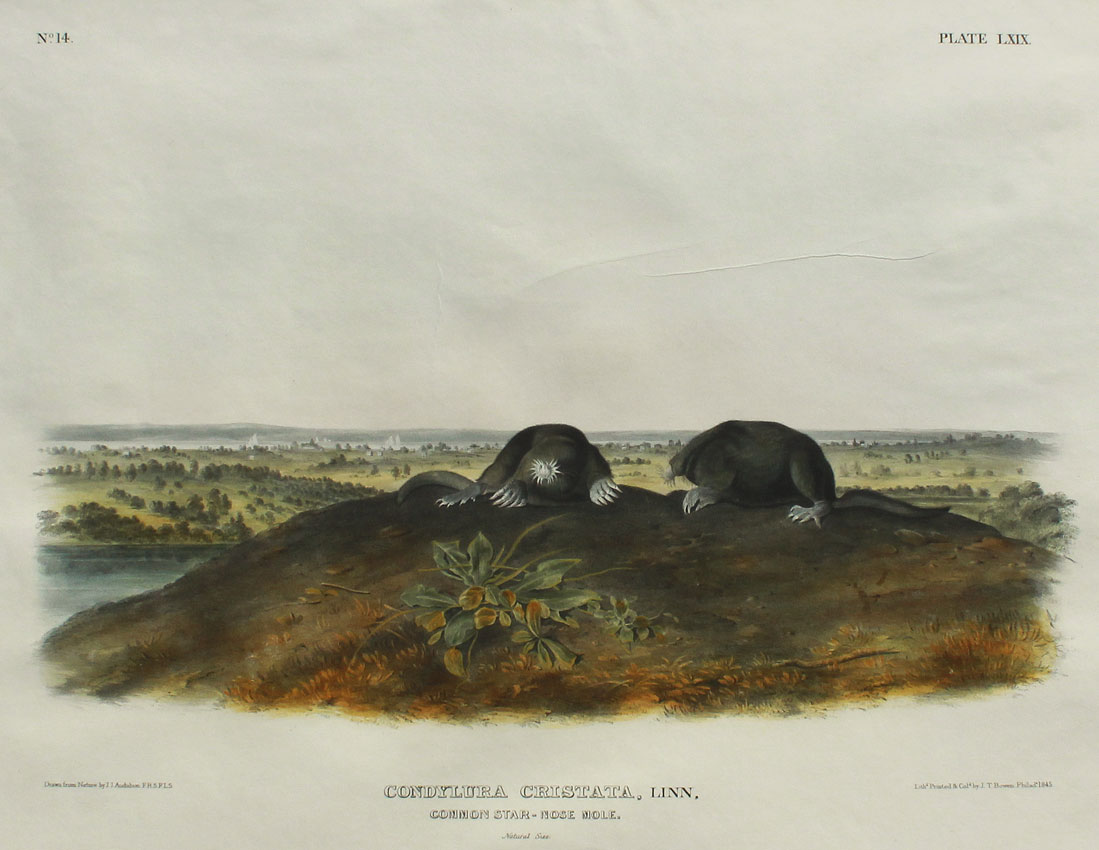 ORIGINAL AUDUBON ELEPHANT FOLIO LITHOGRAPH OF THE COMMON STAR NOSED MOLE, FROM THE VIVIPAROUS QUADRUPEDS OF NORTH AMERICA: 21 1/4'' x 26 3/4'', number 14 plate 19 in acid free mating and backing, encased in clear plastic envelope.