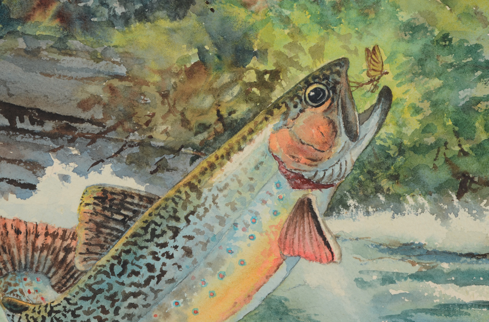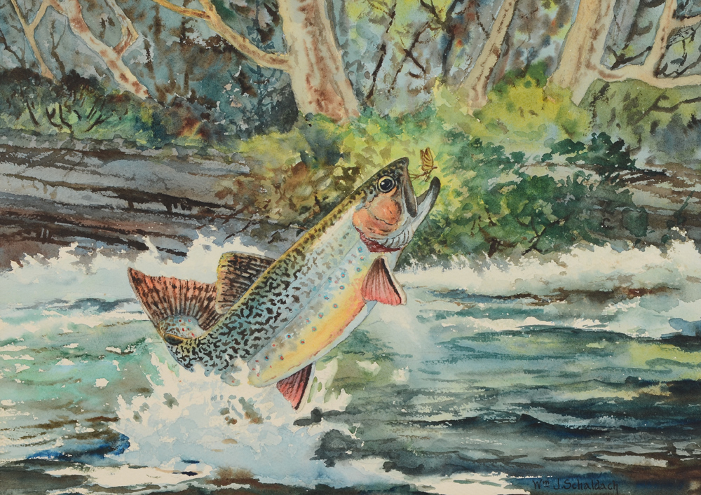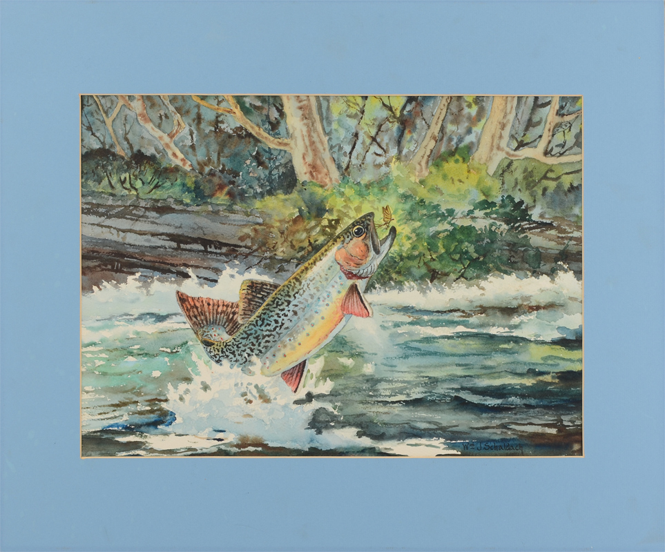 SCHALDACH, William Joseph, (American, 1896-1982): Trout Feeding on a Fly, Watercolor, Sight size 11 3/4'' x 16 1/2'', signed lower right, overall with mat 18'' x 22'', unframed.