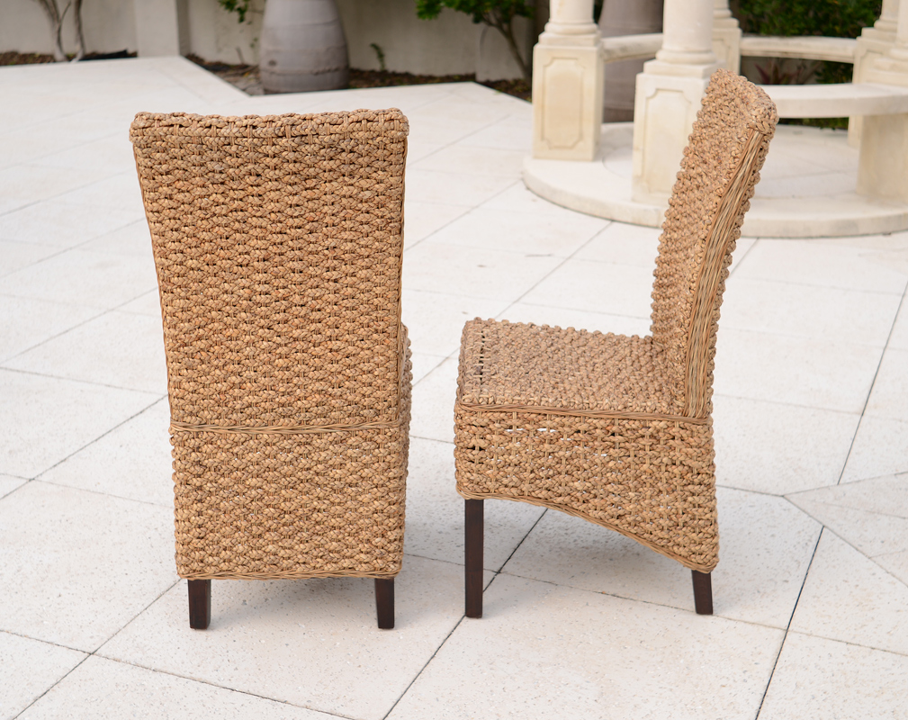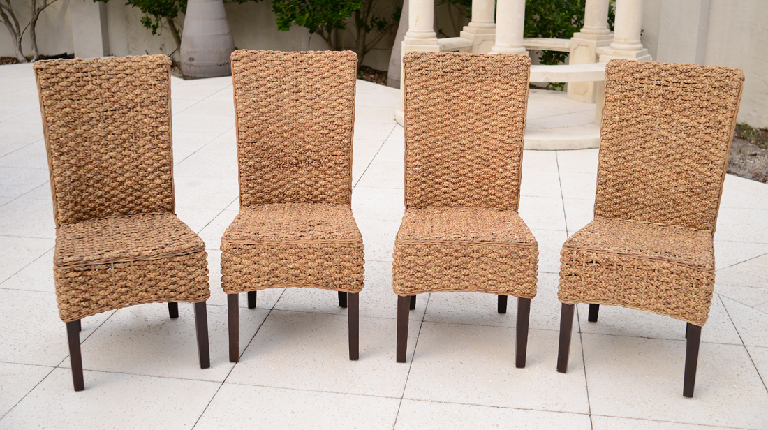 4 WOVEN SIDE CHAIRS: 4 contemporary side chairs, woven backs, seats and sides, no visible tag or label. Measure 40 3/4'' h. x 19 1/2'' x 22 1/2''.