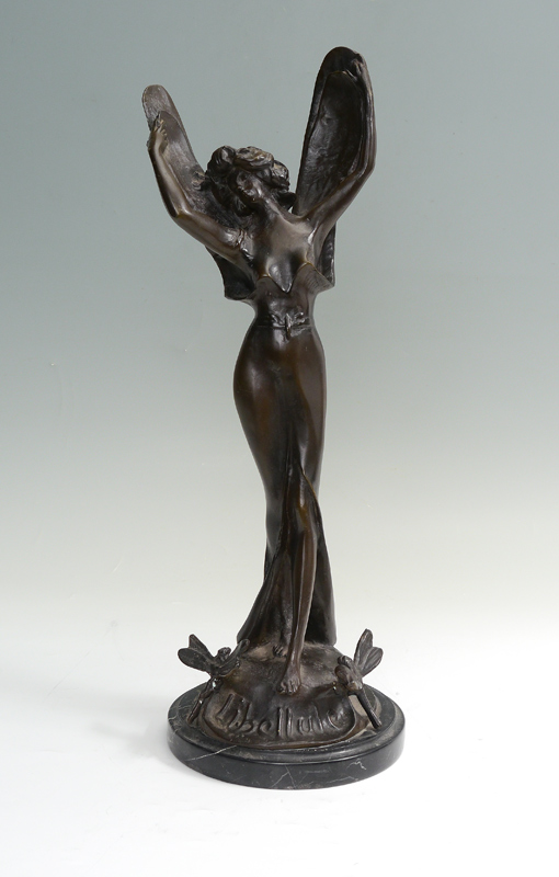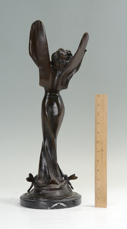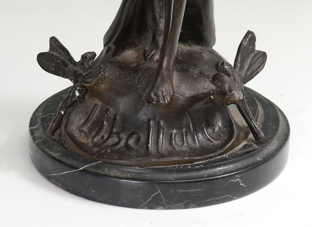 FAIRY BRONZE ''LIBELLULE'': 19'' h., dragon flies at her feet, affixed to marble plinth, A 20th Century casting.