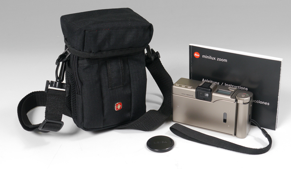 LEICA MINILUX ZOOM CAMERA: 35mm film camera with the Vario-Elmar 35-70 mm 3.5-6.5 lens. Automatic focus with fast zoom lens. New retail price is over $900. Sold with a protective Samsonite storage bag and the book.