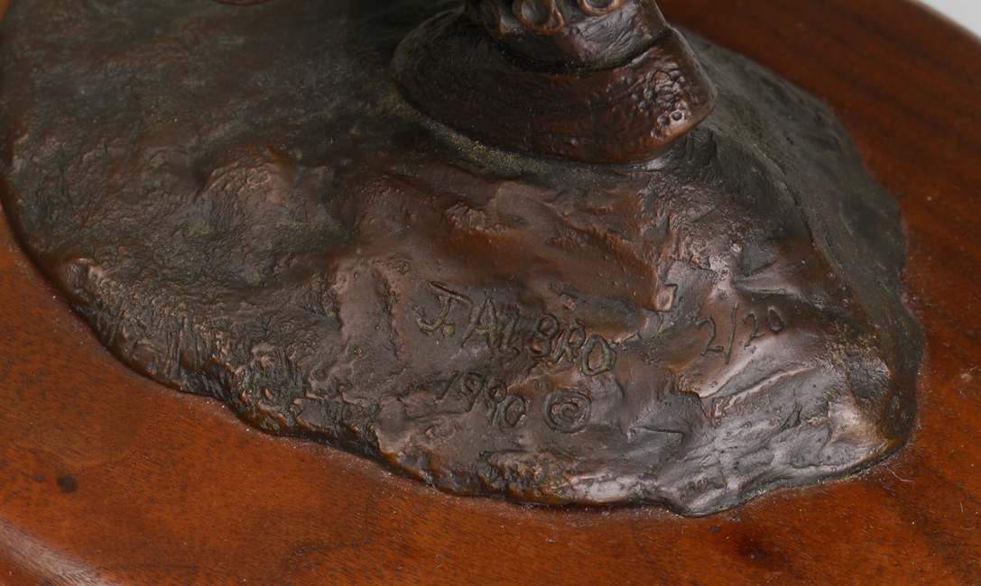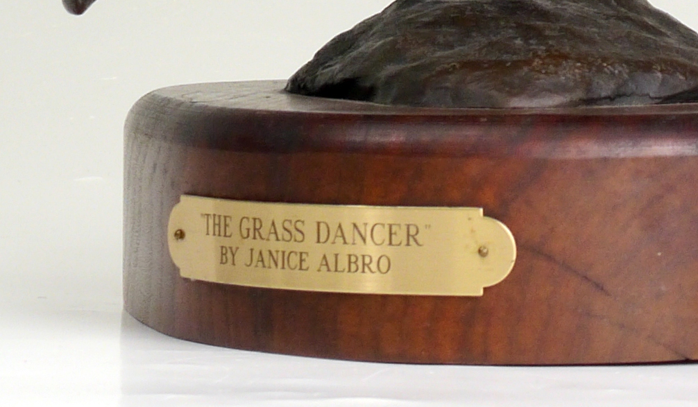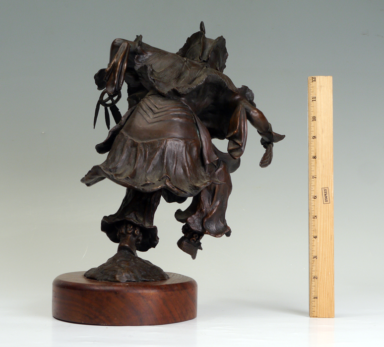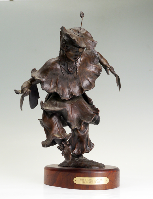 JANICE ALBRO INDIAN BRONZE: ''The Grass Dancer'', 13 1/2'' h., signed, numbered 2/20, and dated 1990, affixed to wooden plinth, 16'' overall.