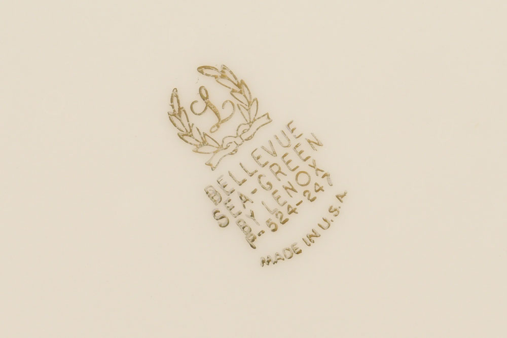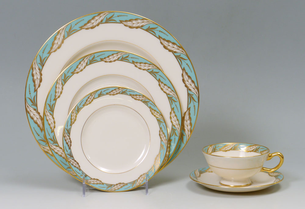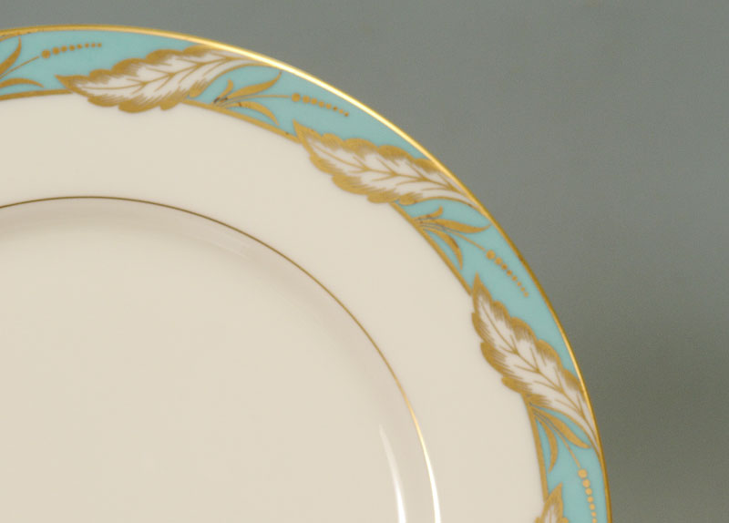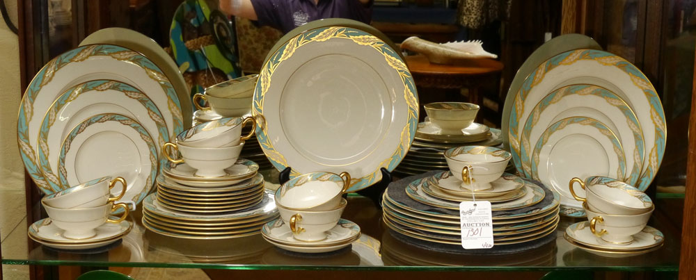 LENOX FINE CHINA IN THE BELLEVUE PATTERN: 44 pieces to include 9 dinner plates (10 1/2''), 8 salad plates, (8 1/4''), 9 bread plates, 9 cups and 9 saucers.