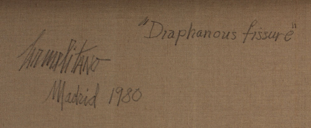 CARMELITANO, Frank, (Spanish-American, 1935-2003): : ''Diaphanous Fissure'', Oil/Canvas, 45'' x 57'', signed lower right and dated '97, signed, titled and dated Madrid 1980 verso.