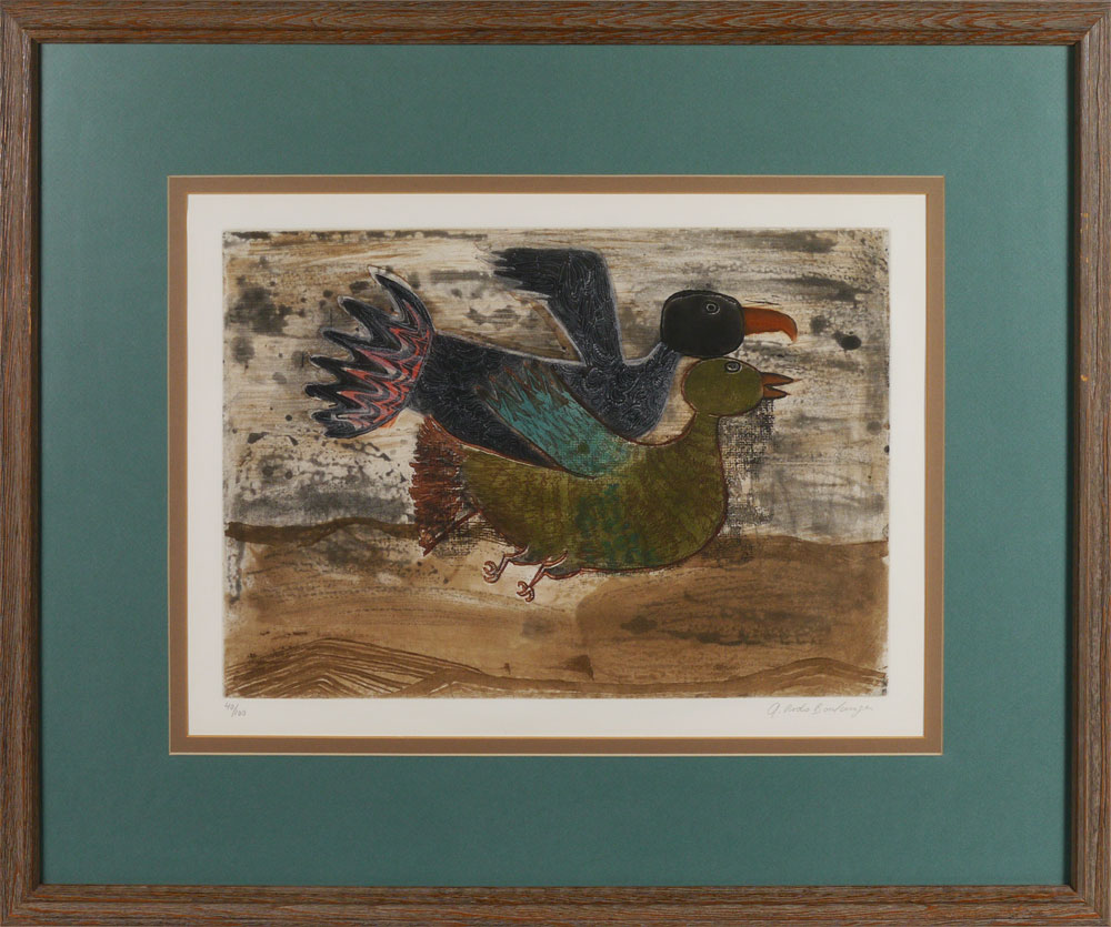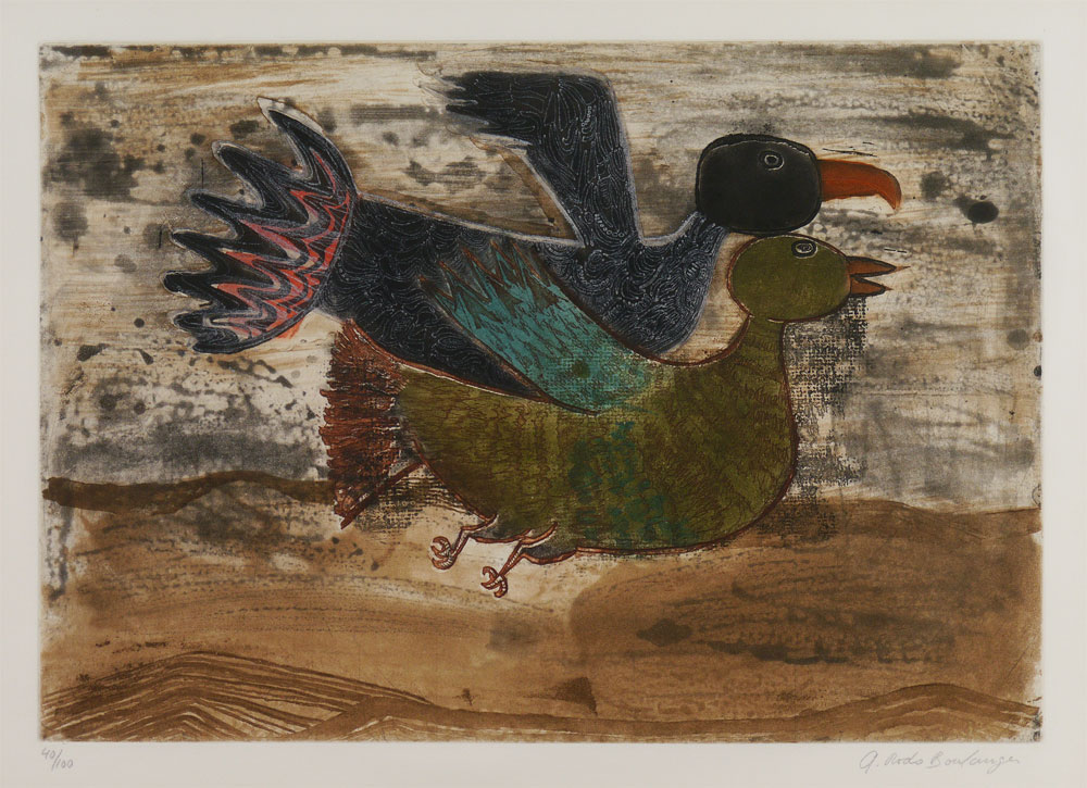 BOULANGER, Graciela Rodo, (French, 1935- ): ''Les Deux Canards'', Etching, sight size 15 1/2'' x 21 1/2'', signed lower right, numbered lower left 40/100, framed, 26 1/2'' x 33''.